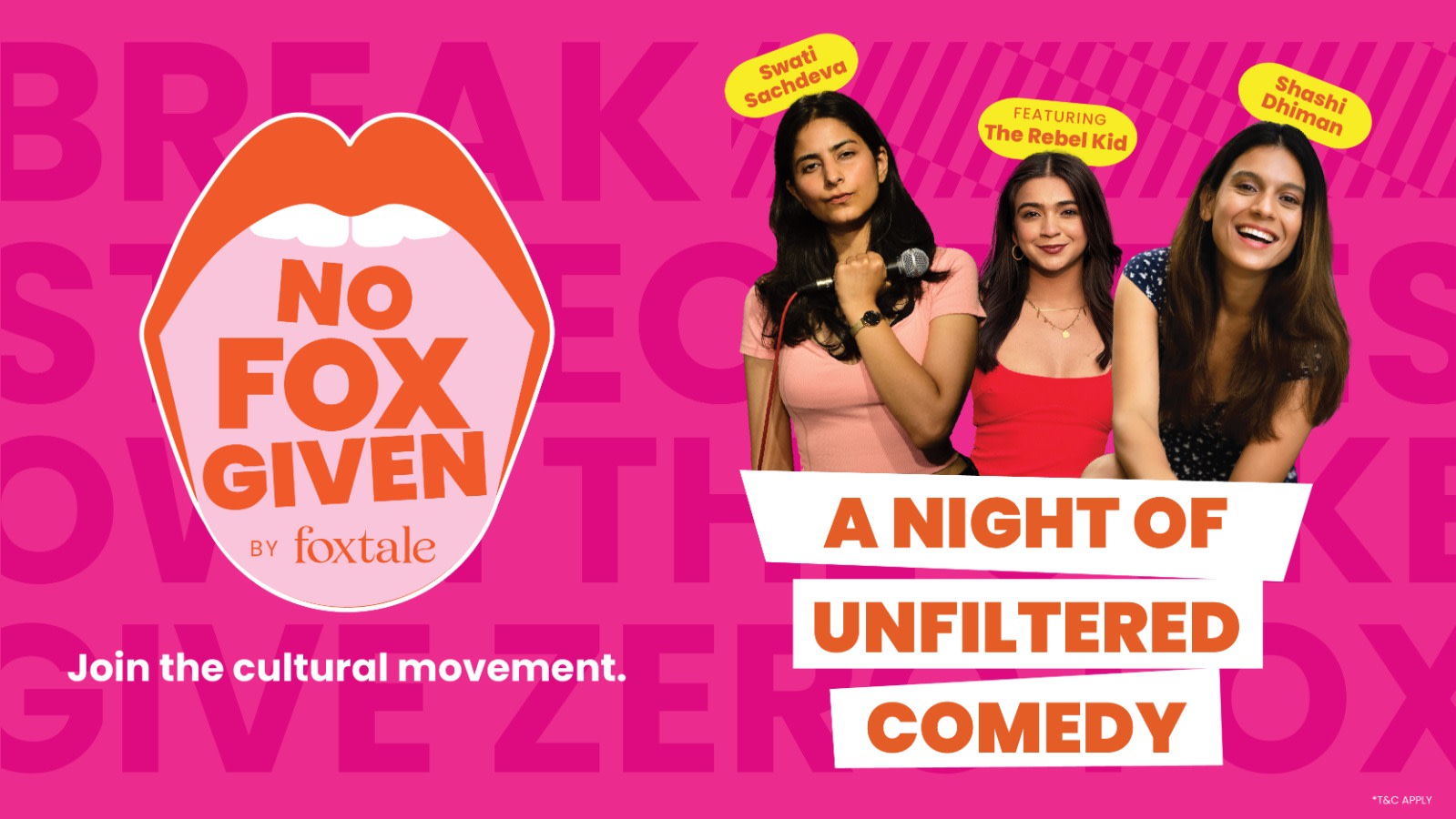 NO FOX GIVEN is a bold, unapologetic comedy show by Foxtale, that challenges the judgment Indian women face daily—through humour.