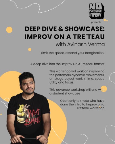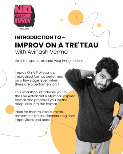 Improv On A Tre'teu is a improvised format performed on a tiny stage, even when there are 5 performers on it! This workshop introduces you to the Live Action Set & Mumbai inspired Improv on A Tre'teu format and prepares you for the deep-dive into the format.