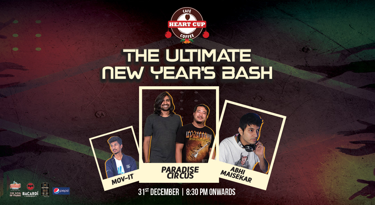 Join us for an ultimate New Year’s bash that Heart Cup Coffee, Jubilee Hills is known for. With three zones and three unique acts. While the op3en air cafe section, will have Hyderabad's top singer songwriter Arpit Chourey's band The Paradise Circus performing, we have our dj talent hunt winner MOV-IT playing a commercial set in the indoor ALT SPACE and one of Hyderabad's well known underground talent Abhi Maisekar will be taking over the console in the upstairs Bistro section. One Venue and Three Parties only at Heart Cup Coffee, Jubilee Hills.