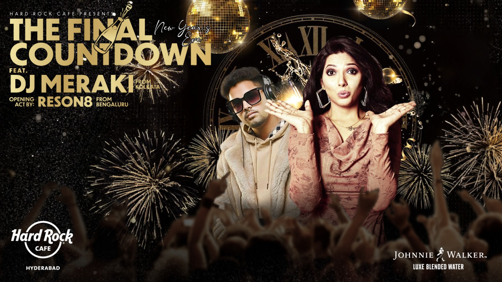 This New Year’s Eve, Hard Rock Cafe Hyderabad turns up the volume for an unforgettable celebration — NYE: The Final Countdown featuring the electrifying duo DJ Meraki and Reson8!