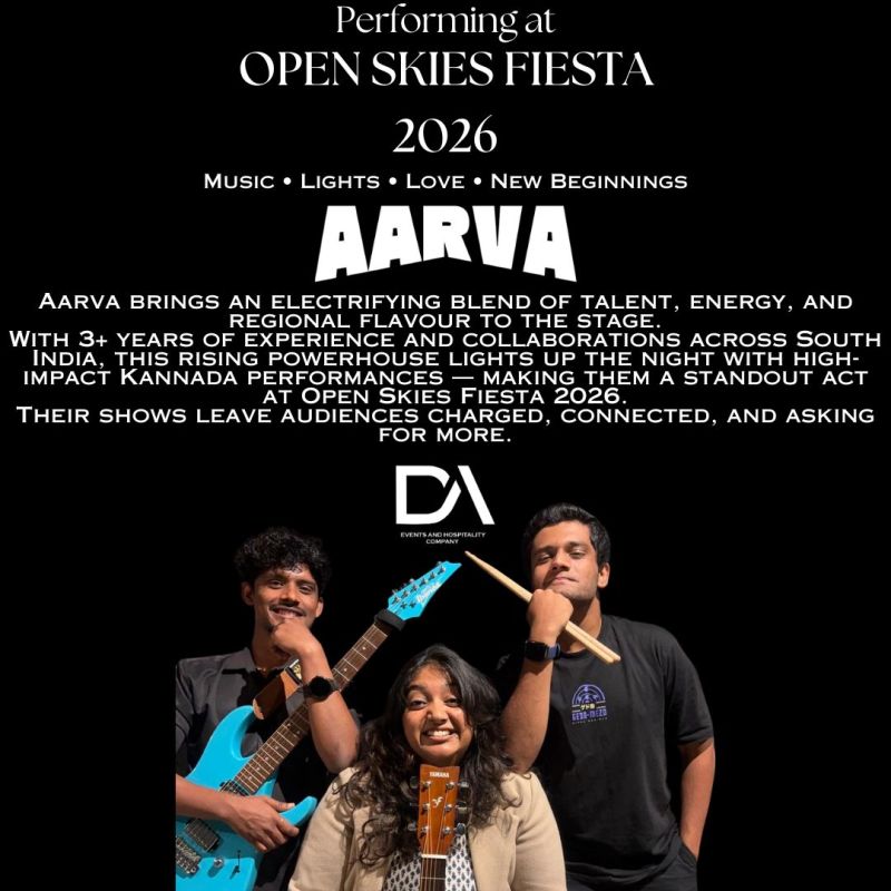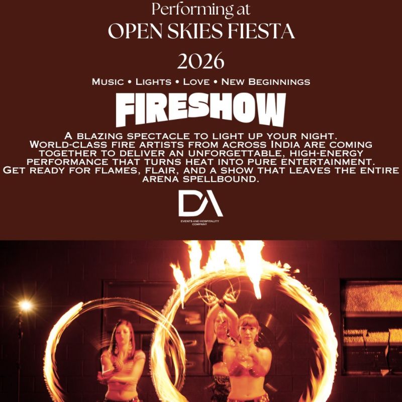 Open Skies Fiesta 2026 brings Bengaluru a grand luxury outdoor celebration where couples, families, and kids can revel in comfort, safety, and style—all beneath a breathtaking starlit sky. Join us for a night of music, magic, and unforgettable moments as we welcome 2026 in spectacular fashion.