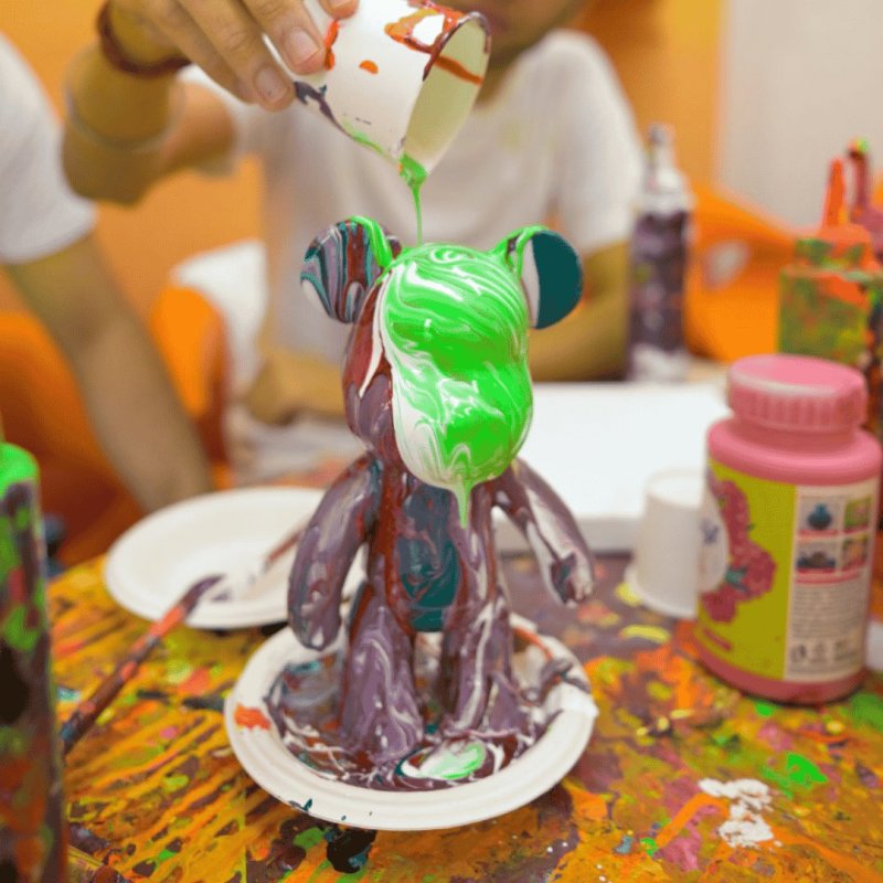 Step into a space that celebrates chaos, colour and creativity. Paint It Wild is your creative escape to let loose and see where the magic of neon colours takes you. Whether you’re flinging paint in the splash room, swirling colours on fluid art canvas, or crafting your own keepsake in keychain or teddy art, every experience is built for fun. Try your hand at UV neon painting under blacklight or pour your soul out on canvas. Want to make a birthday, date, or team day out feel unforgettable? We've got two personal rooms to host your crew, complete with music, Crocs and all the protective gear you need to get messy.