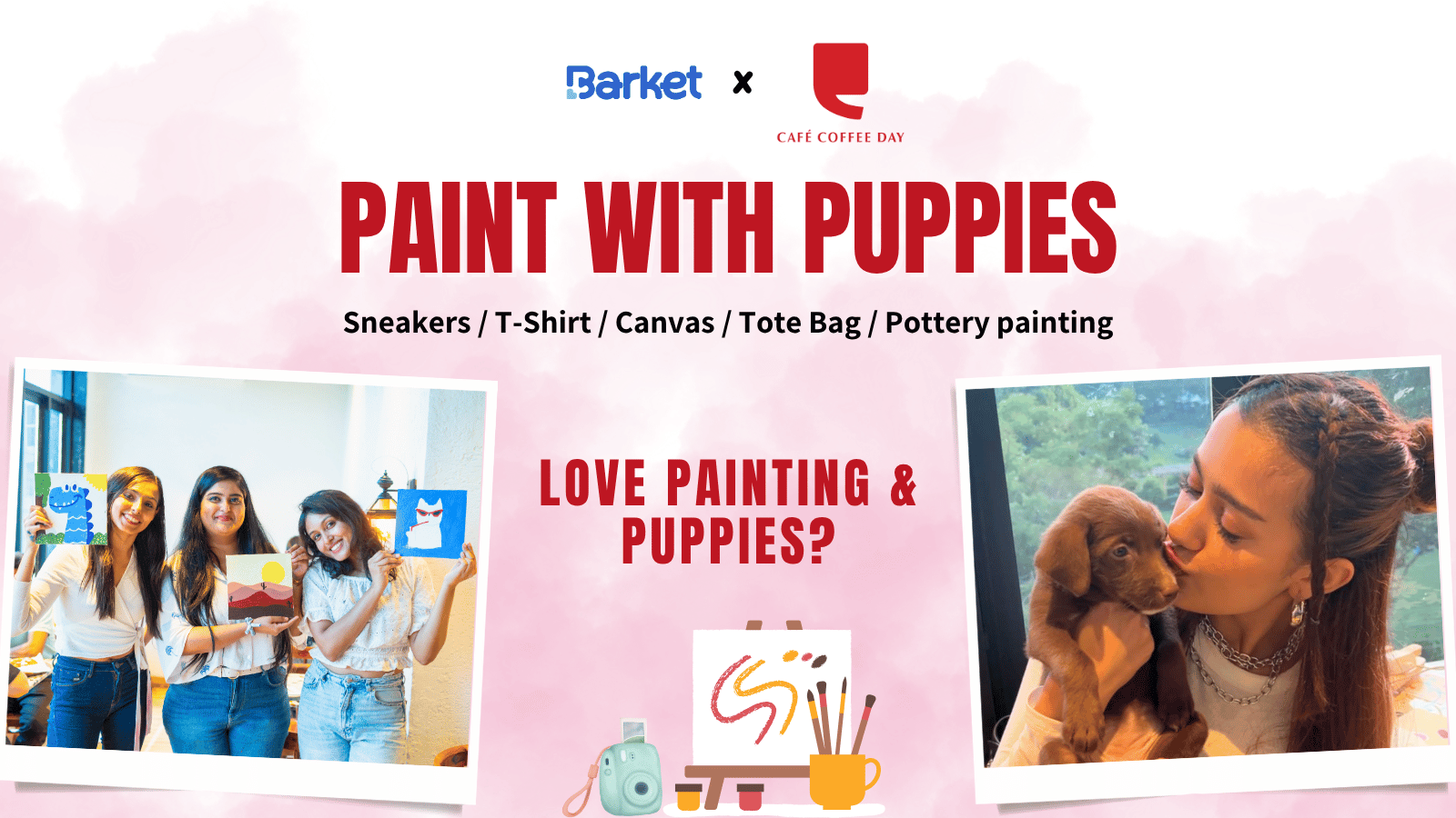 🎨 Painting Sessions: Channel your inner artist and create a masterpiece. Let your imagination run wild as you paint alongside playful puppies.