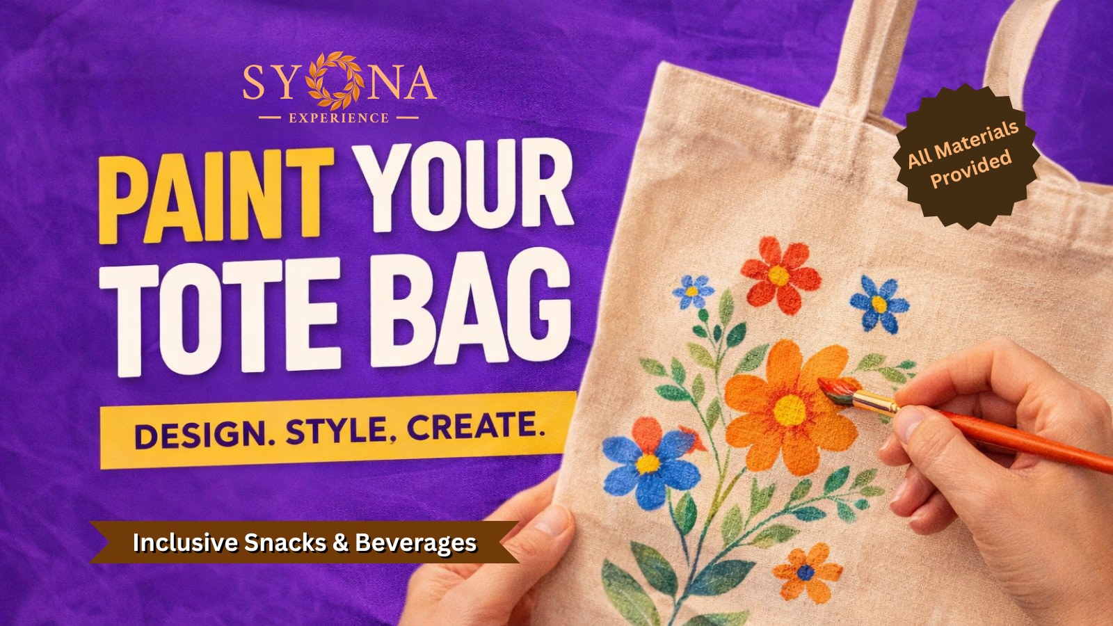 Our PAINT YOUR TOTE BAG Workshop is a relaxing, hands-on creative experience designed for anyone who wants to explore art in a fun and mindful way. Guided by experienced instructors, you will learn how to design, paint, and personalize your own tote bag using easy techniques and creative guidance.