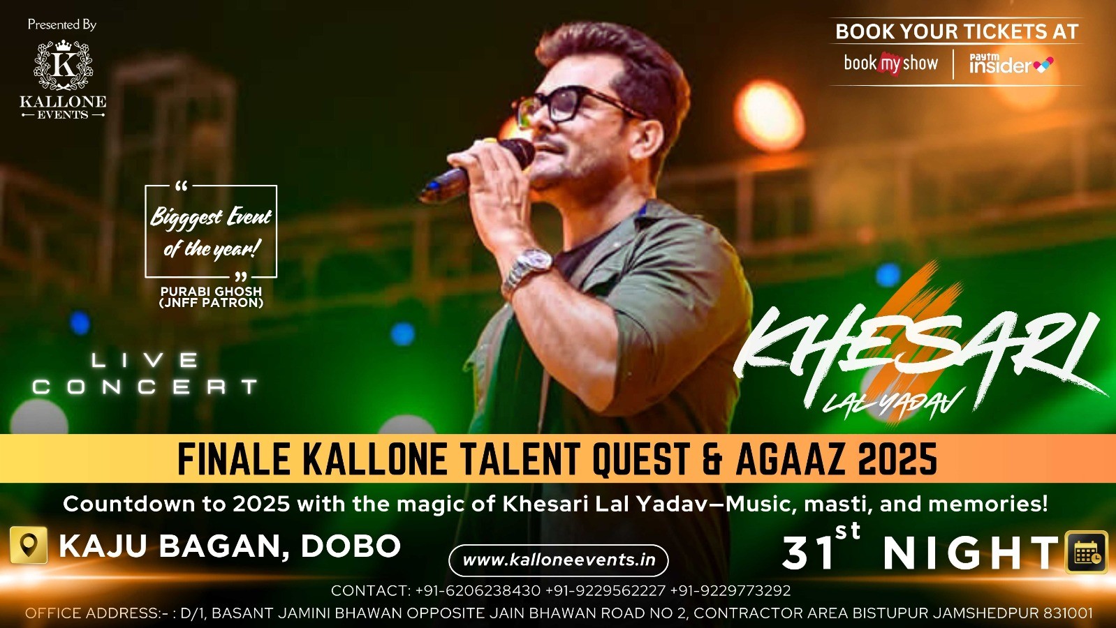 Get ready, Jamshedpur! The Bhojpuri Superstar Khesari Lal Yadav is coming to rock our city with his incredible voice and high-energy performance. This is Jamshedpur’s first-ever live concert with Khesari Lal Yadav, promising to be a grand and unforgettable night. Expect heart-pounding music, vibrant performances, and a massive crowd—all celebrating Bhojpuri music like never before!