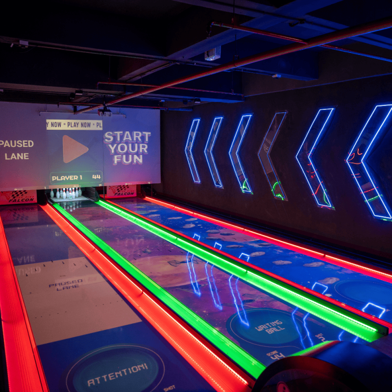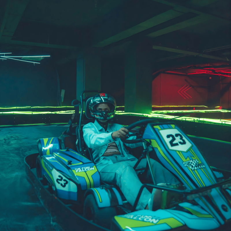 Experience India’s best indoor go-karting at The Pink Falcon, Gurgaon! Designed for both kids and adults, our world-class track delivers unmatched speed and thrill in a safe, all-weather environment. Beyond karting, enjoy our bowling alley, arcade games, F1 racing simulators, and a vibrant in-house café — making it the ultimate fun zone for all ages.