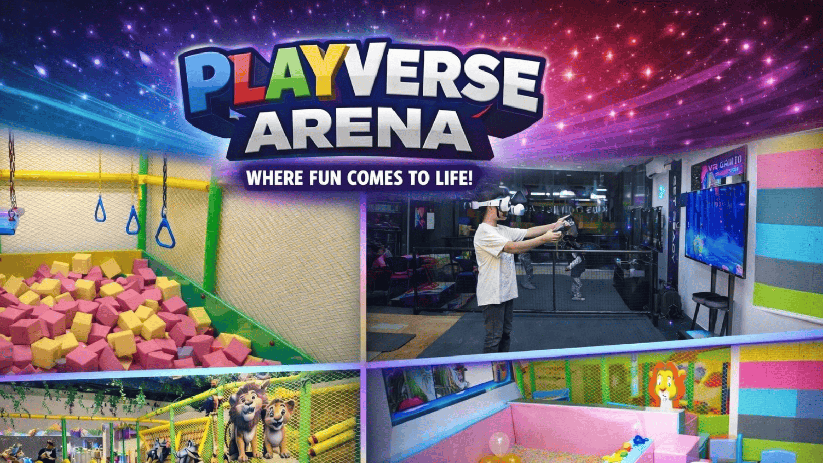 Playverse Arena – Soft Play & Digital Play Zone offers a dynamic, family-friendly space where kids can enjoy the perfect mix of physical activity and tech-driven fun. The venue features a safe and engaging soft play area designed to boost motor skills, encourage social interaction, and spark imagination.