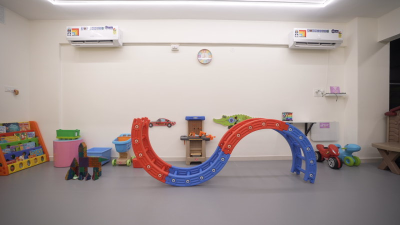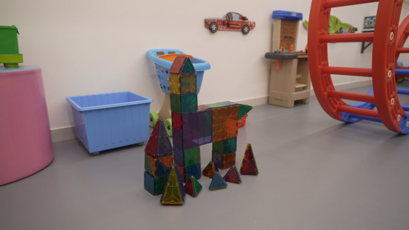 • Parent-child bonding – enjoy sit-on activities like Magnatiles, Legos, and pretend play stations together.