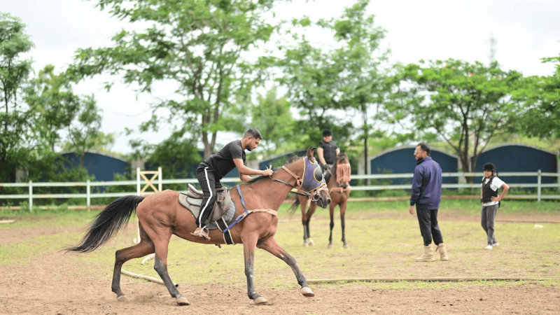 Experience the joy of horse riding at Pune Equestrians near Wagholi! Perfect for beginners, this outdoor session introduces basic riding and horse handling with trained instructors. Families can also enjoy a charming petting zoo with friendly farm animals like rabbits, ducks, parrots, cows and more — making it a fun day out for kids and adults alike.