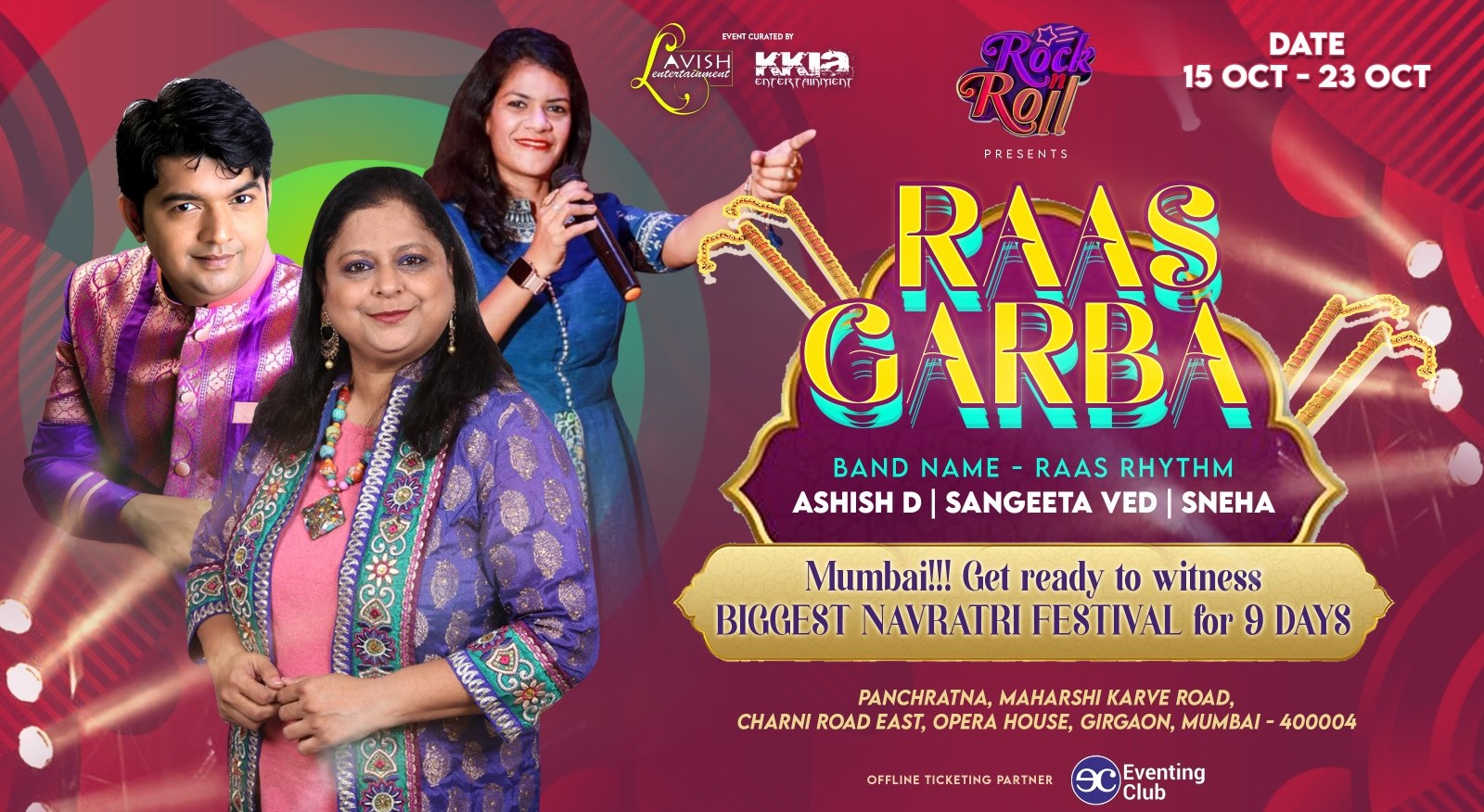 The event will have a footfall of around 1200 - 1500 commuters daily. The event is a nine days event which will be accompanied with the traditional Gujrati band and singers entertaining the crowd. The event will start by 7.00 p.m. onwards. The event will have celebrity and politicians in attendance. The crowd expected is cosmopolitan.