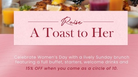 🎉 Celebrate Women's Day with a lovely Sunday brunch featuring a full buffet, starters, welcome drinks, and 15% OFF when you come as a circle of 10.