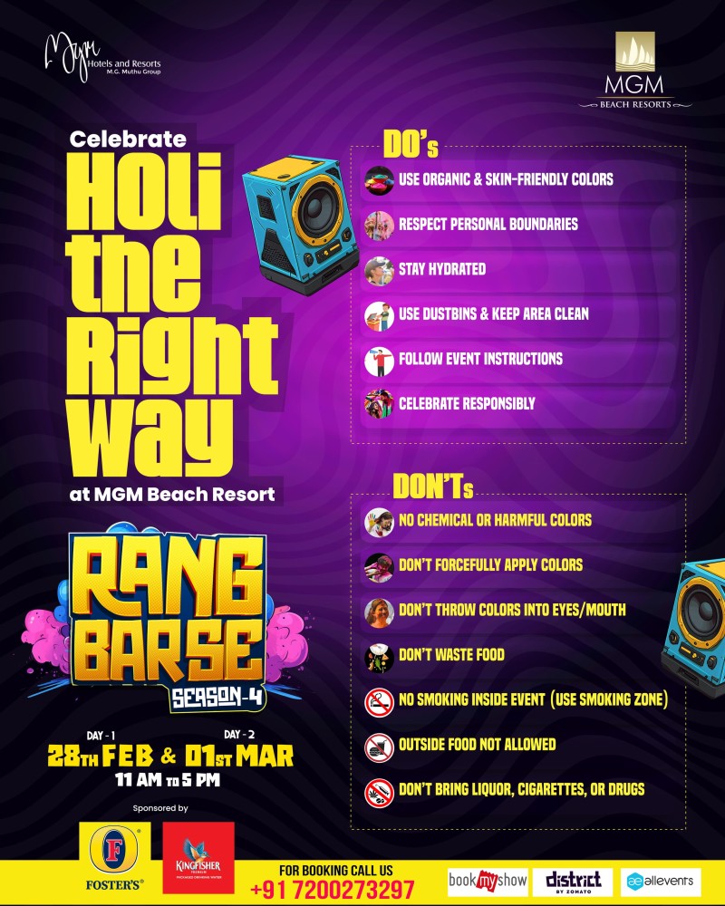Chennai’s BIGGEST & ONLY Holi Beach Party returns to MGM Beach Resorts 💥
