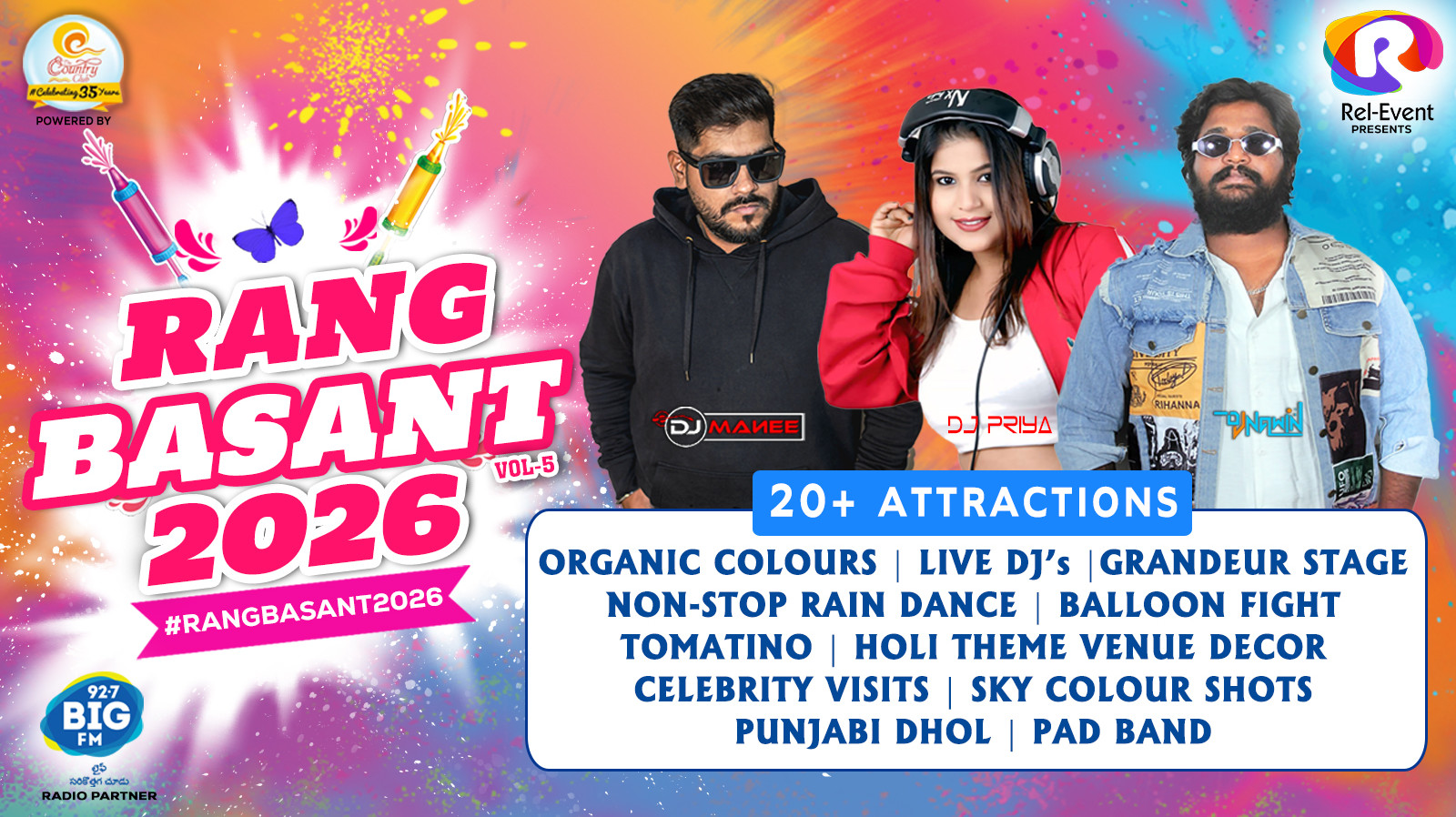 Join us for the grand celebration of Rang Basant 2026 – Vol. 5—a high-energy Holi festival packed with music, colours, dance, and unforgettable festive vibes.