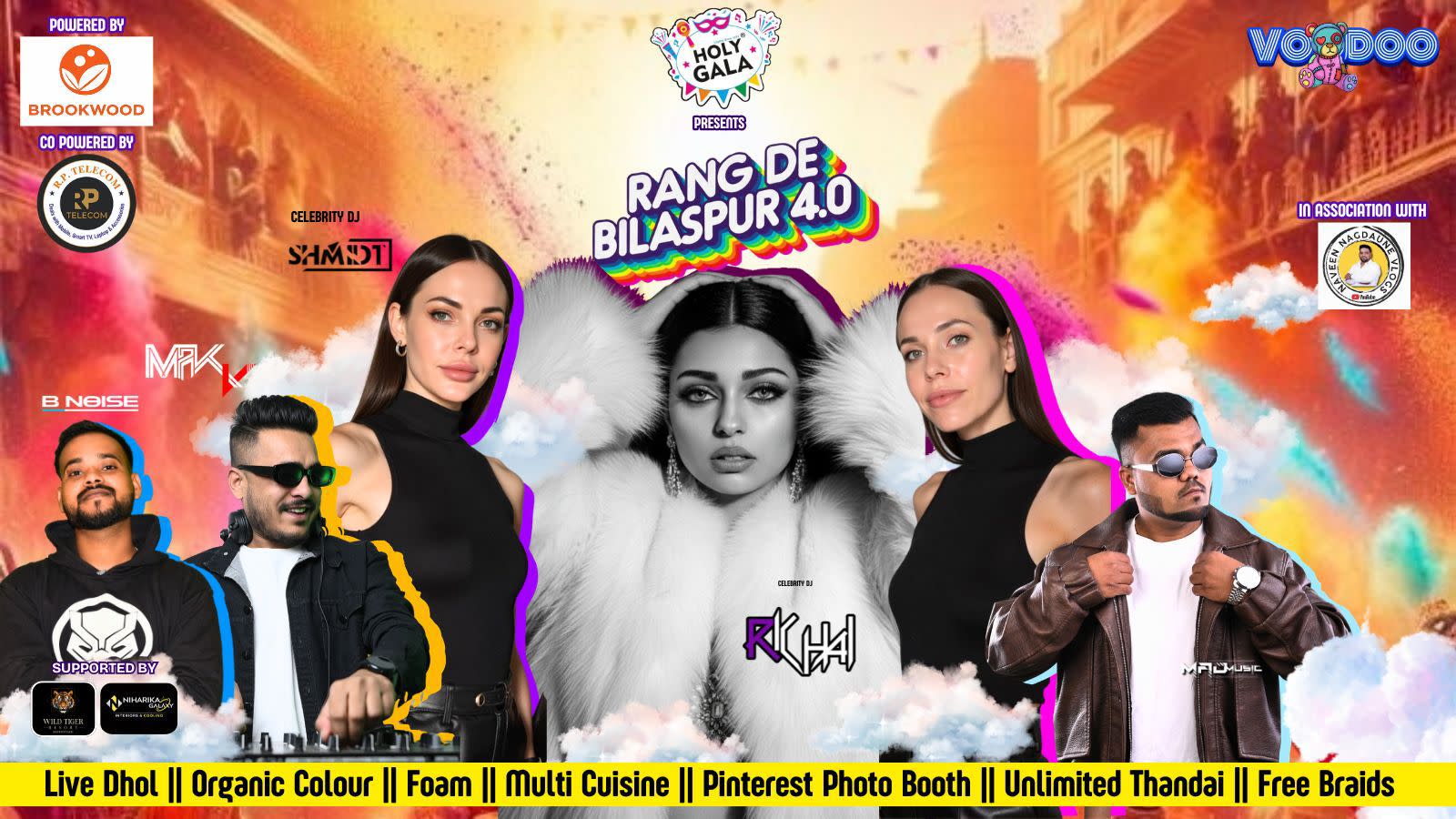 Rang De Bilaspur 4.0 is the largest open-air Holi celebration in Central India. With the best DJs around the World, it's an EDM, Bolly, and Commercial Dhol fest fused with our favourite festival, Holi.