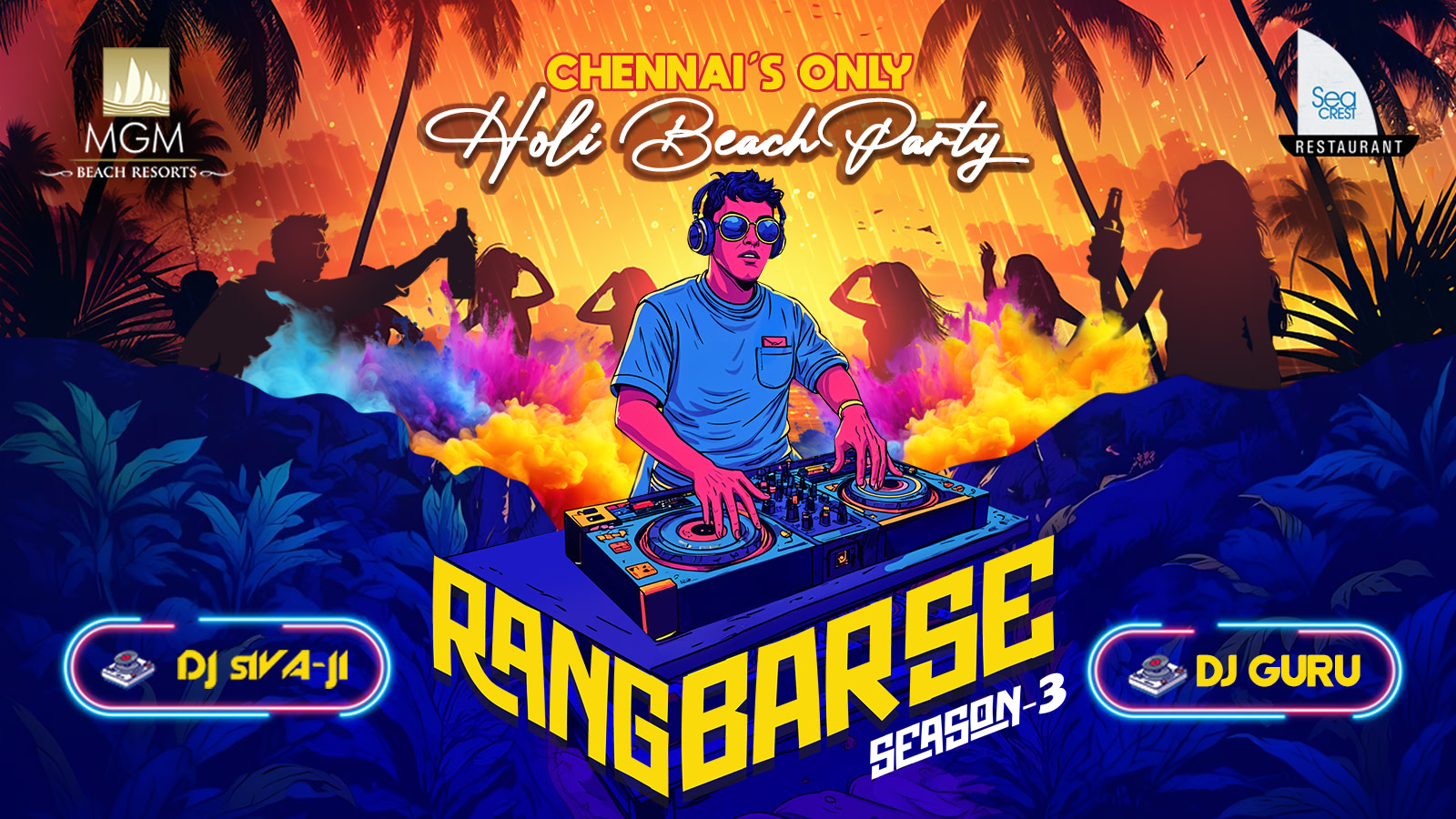 Imagine this: Vibrant colours, thumping beats, unlimited fun, and the ocean breeze setting the perfect vibe! With live DJs spinning the hottest tracks, rain dance zones, organic colours, and beachside party vibes, this is the ultimate way to celebrate Holi in Chennai.