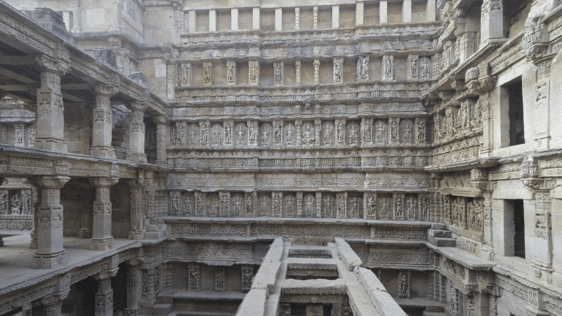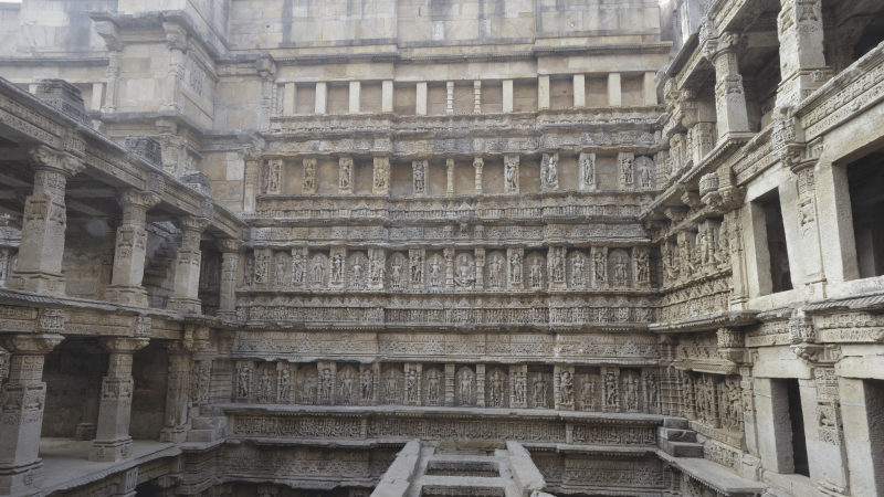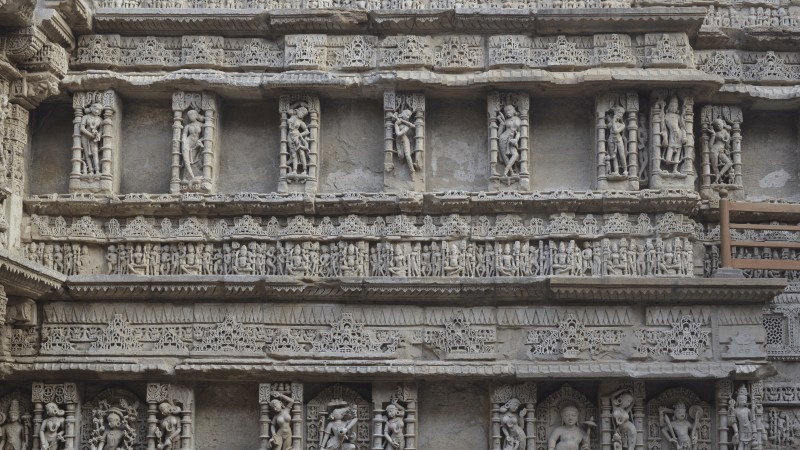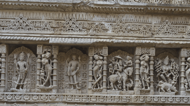 Conceived as both a memorial and a monumental water resource, the Stepwell descends through seven levels that display intricately carved imagery from Hindu mythology. Nearly four hundred sculptures remain from an estimated eight hundred, depicting deities, apsaras, narrative scenes, and select erotic themes that illustrate the artistic traditions of the period.
