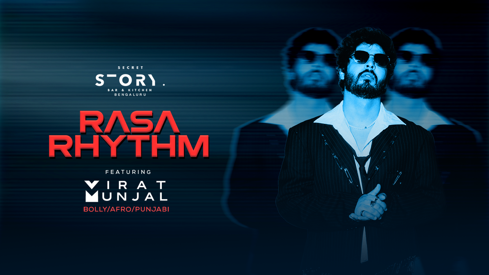 Saturday night turns vibrant as Virat Munjal brings his signature high‑energy Bollywood, Punjabi & commercial sound to Rasa Rhythm.