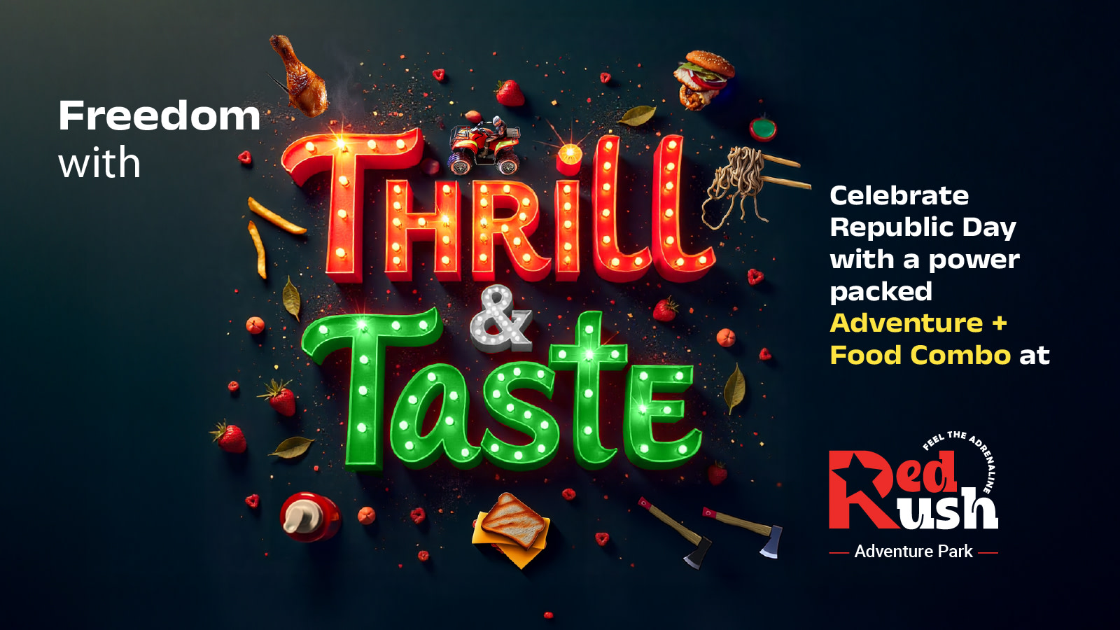 Celebrate the spirit of Republic Day with an exciting mix of thrilling activities and delicious food at Red Rush Adventure Park.