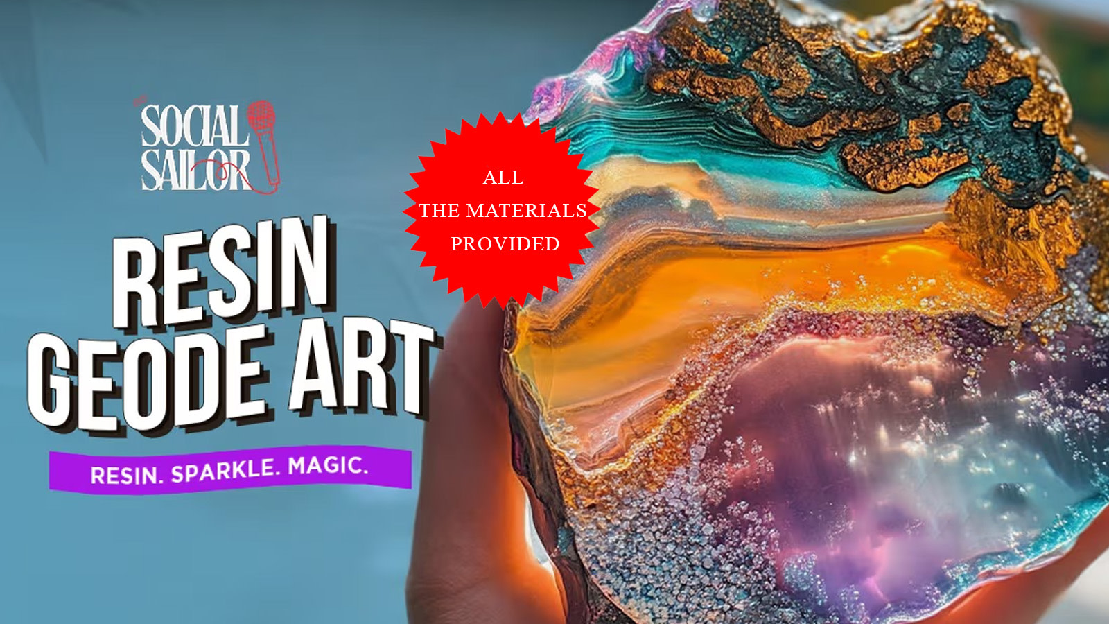 Play with resin, metallic pigments, and glitter to craft a mesmerizing geode masterpiece. No prior experience needed—just pour, swirl, and let your creativity shine!