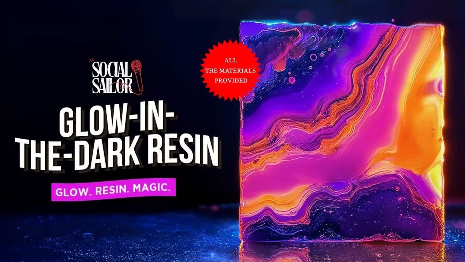 Resin Glow Art Date is a magical, hands-on workshop where you and your partner will create glowing resin art using vibrant pigments and glow-in-the-dark elements.