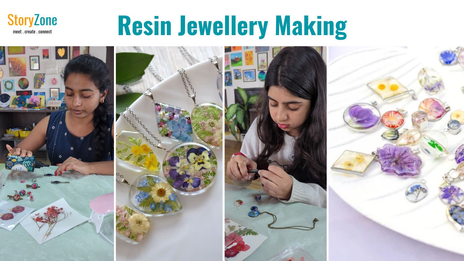 In resin jewellery session we will be learning basics of resin, using UV resin & relevant tools, planning and designing floral jewellery, and finally creating some bespoke pieces for yourself.