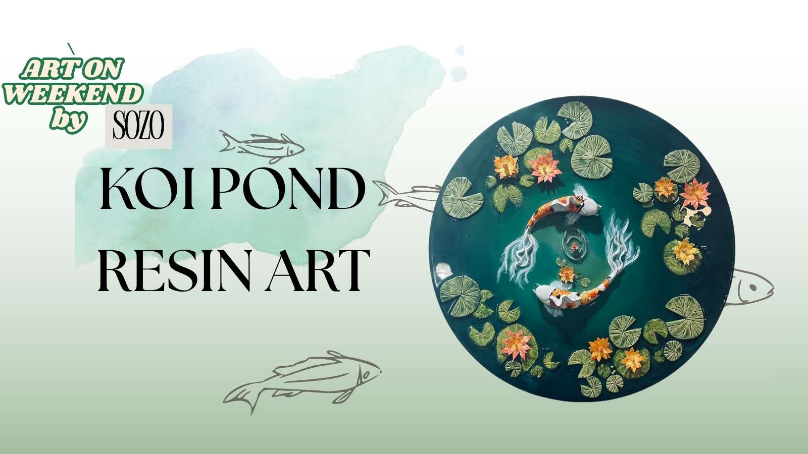 You’ll learn how to layer colors, create realistic water effects, place koi elements, and work with clear resin to achieve a 3D illusion of flowing water.