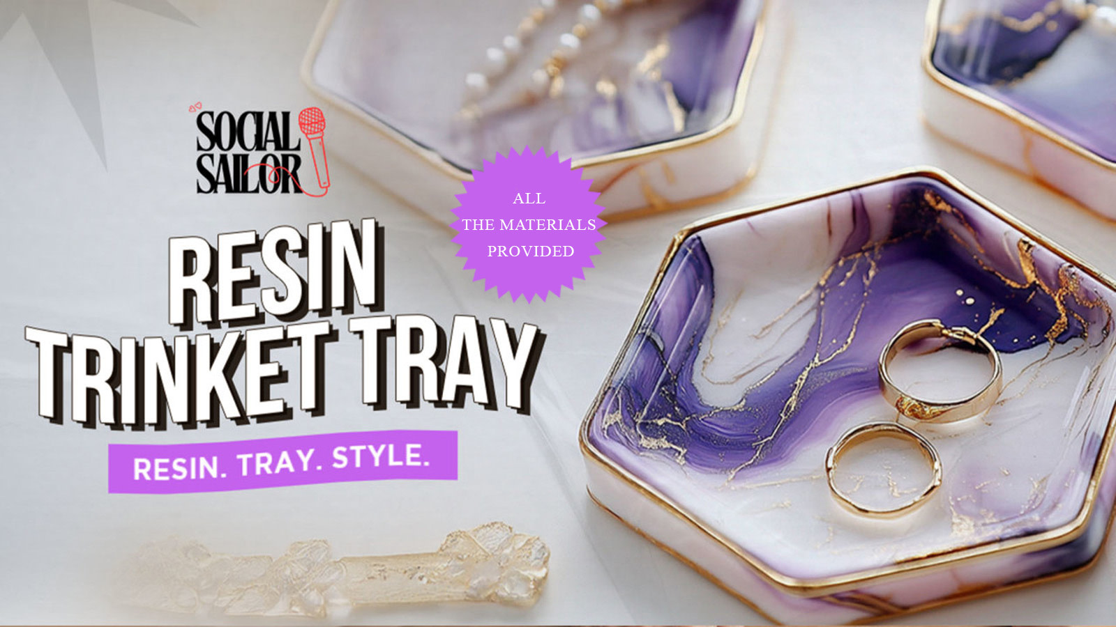 Customize your trinket tray using vibrant pigments, gold flakes, glitter, and more—poured into elegant moulds to shape your masterpiece. No prior experience needed—just pour, swirl, and create magical art!