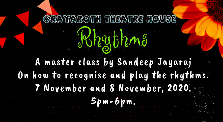 We at Rayaroth Theatre House, bring you the very musician and percussionist from Malabar region of Kerala, Sandeep Jayaraj.