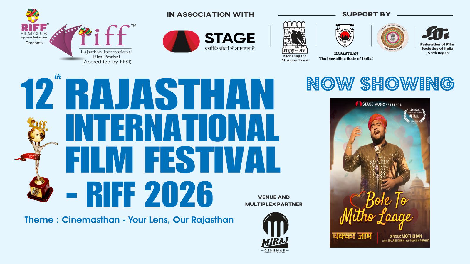 After Successful Eleven editions (Eight editions in Jaipur and Three editions in Jodhpur) the next 12th edition of RIFF - Rajasthan International Film Festival - RIFF 2026 will be held at Miraj Cinemas, Blue City Mall , Circuit House Road, Jodhpur, Rajasthan.