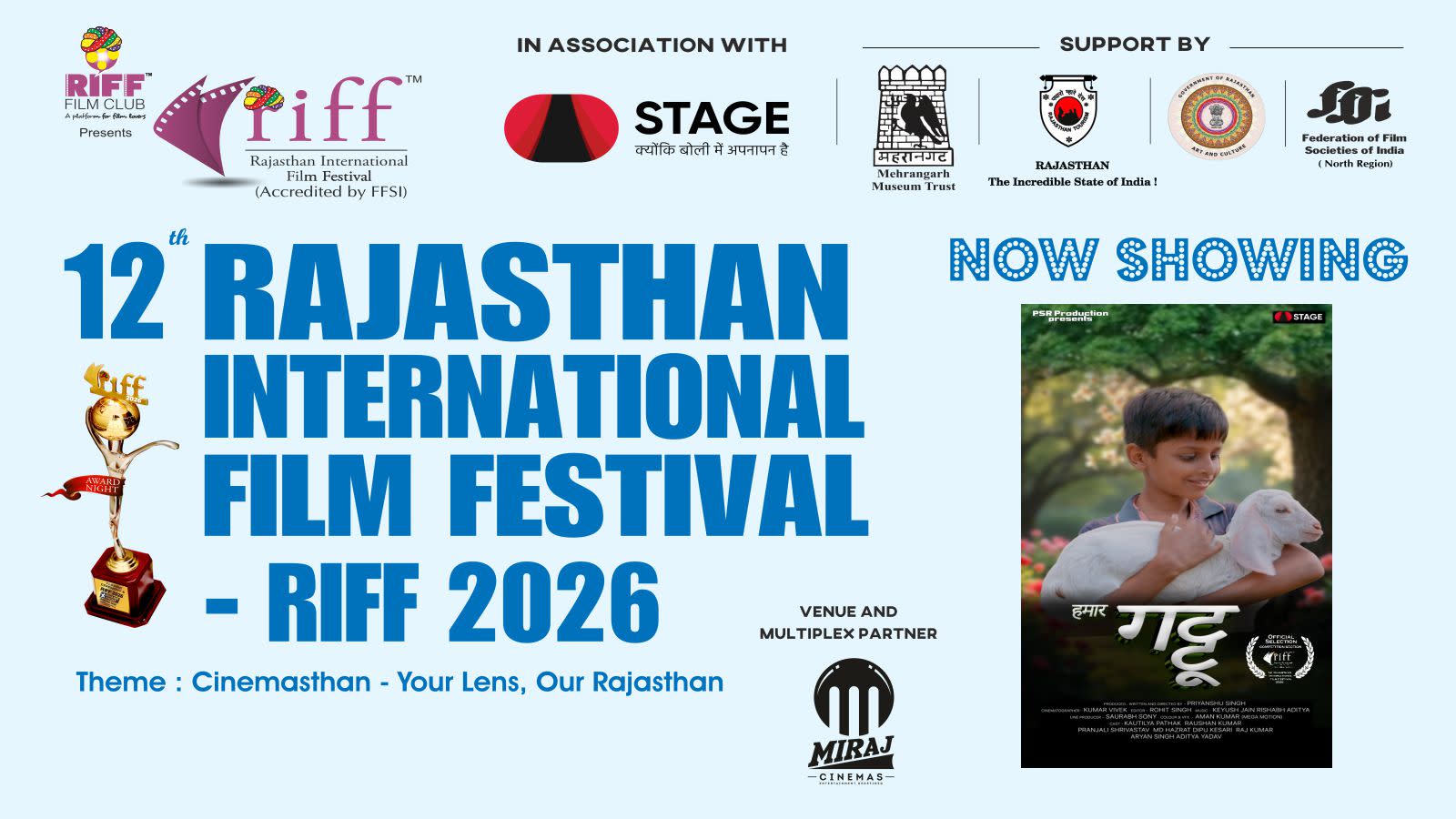 After eleven successful editions (eight editions in Jaipur and three editions in Jodhpur), the next 12th edition of RIFF - Rajasthan International Film Festival - RIFF 2026 will be held at Miraj Cinemas, Blue City Mall, Circuit House Road, Jodhpur, Rajasthan.