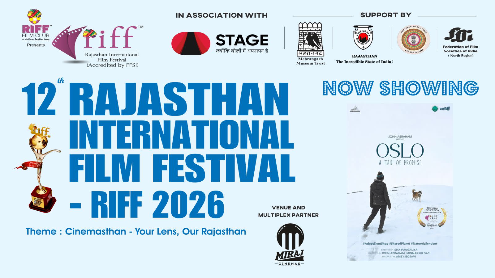 After eleven successful editions (eight editions in Jaipur and three editions in Jodhpur), the next 12th edition of RIFF - Rajasthan International Film Festival - RIFF 2026 will be held at Miraj Cinemas, Blue City Mall, Circuit House Road, Jodhpur, Rajasthan.