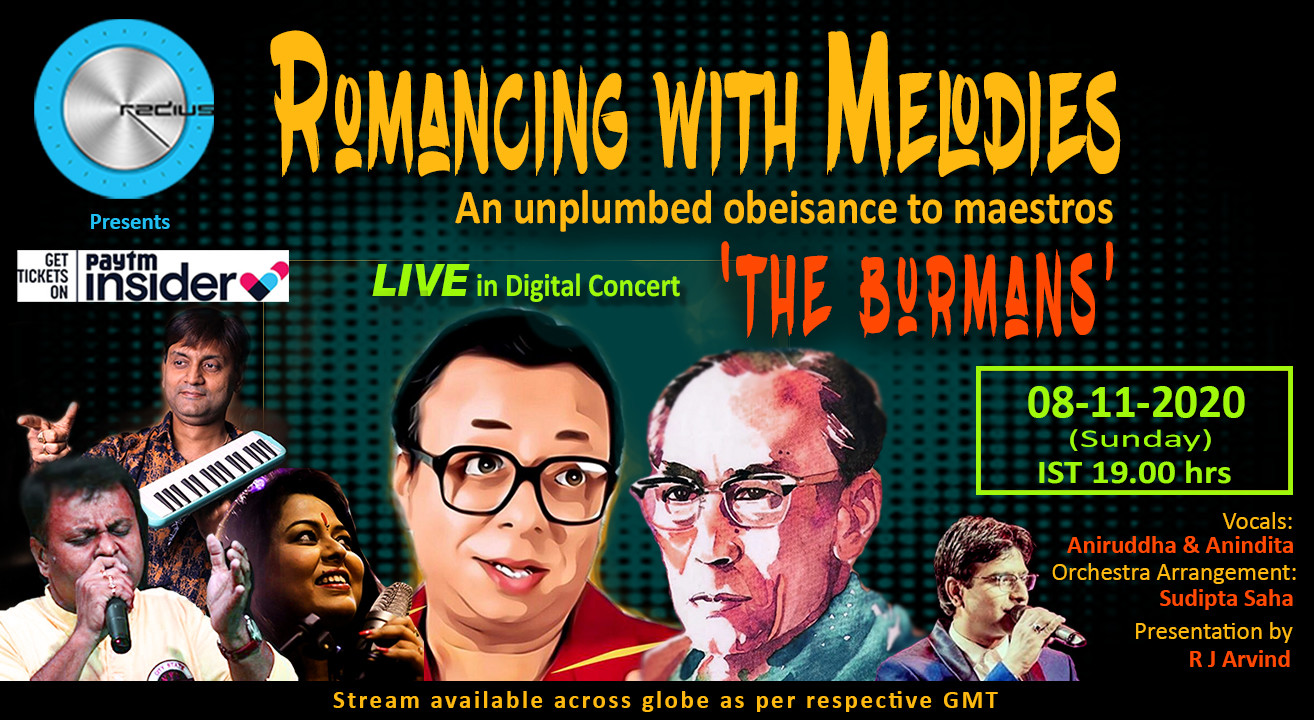 The Hindi film song made its existence as a prevailing distinctive in the culture of the nation and initiated to assume roles beyond the limited purview of cinema. Right from the advent of Indian cinema in first sound film in 1931, musicals with song numbers have been a regular feature in Indian cinema. The songs have become an integral feature of Bollywood mainstream cinema where the music composers appear as the key figure for entire music of any Bollywood movie, having broader role encompassing both composing songs and securing background scores. Bollywood gave us films that blow us away and remembered for years; be it concept, presentation, acting or music, some movies excelled in all segments. But there were films, completely botched in most sections except its music that rocked. A soundtrack can make or break a film, so the composer, as he is the key craftsman of its musical structure. Bollywood has gifted us few such amazing geniuses, out of them particularly two names have exposed their class and proficiency and taken Bollywood music to the extreme level. Be it folk or rhythmic disco, classical or modern, experimental or traditional; these Bengali architects have fashioned Bollywood music with profound contentment and serenity. From lyrical solos, mawkish duets, boisterous dance numbers or a romantic tune; the repertoire is vast. The father is 'no one of kingly ascendancy' but 'the emperor of melody', His son, the innovator, remains to be an eternal bequest, who’s creations are to feel and engross within the heart, from dawn till dead hours of night. Radius will unveil few glimpses of these jewels, through a journey towards discovering and enjoying gold nuggets of immortal rich music, weaved by two most protuberant and maverick composers of Bollywood, in a concert on digital platform, named as ‘Romancing with Melodies’ - an unplumbed obeisance to dignified maestros ‘The Burmans’.