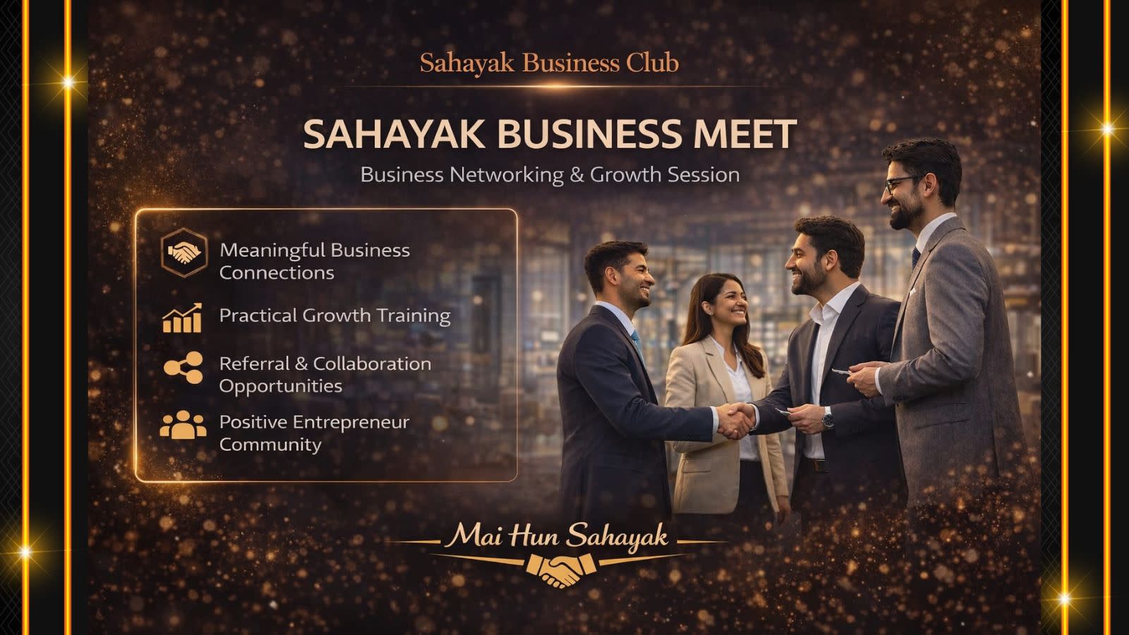Welcome to Sahayak Business Meet 2026 — a powerful offline business networking event designed for entrepreneurs, startup founders, freelancers, and business professionals who want real connections, real collaborations, and real results.