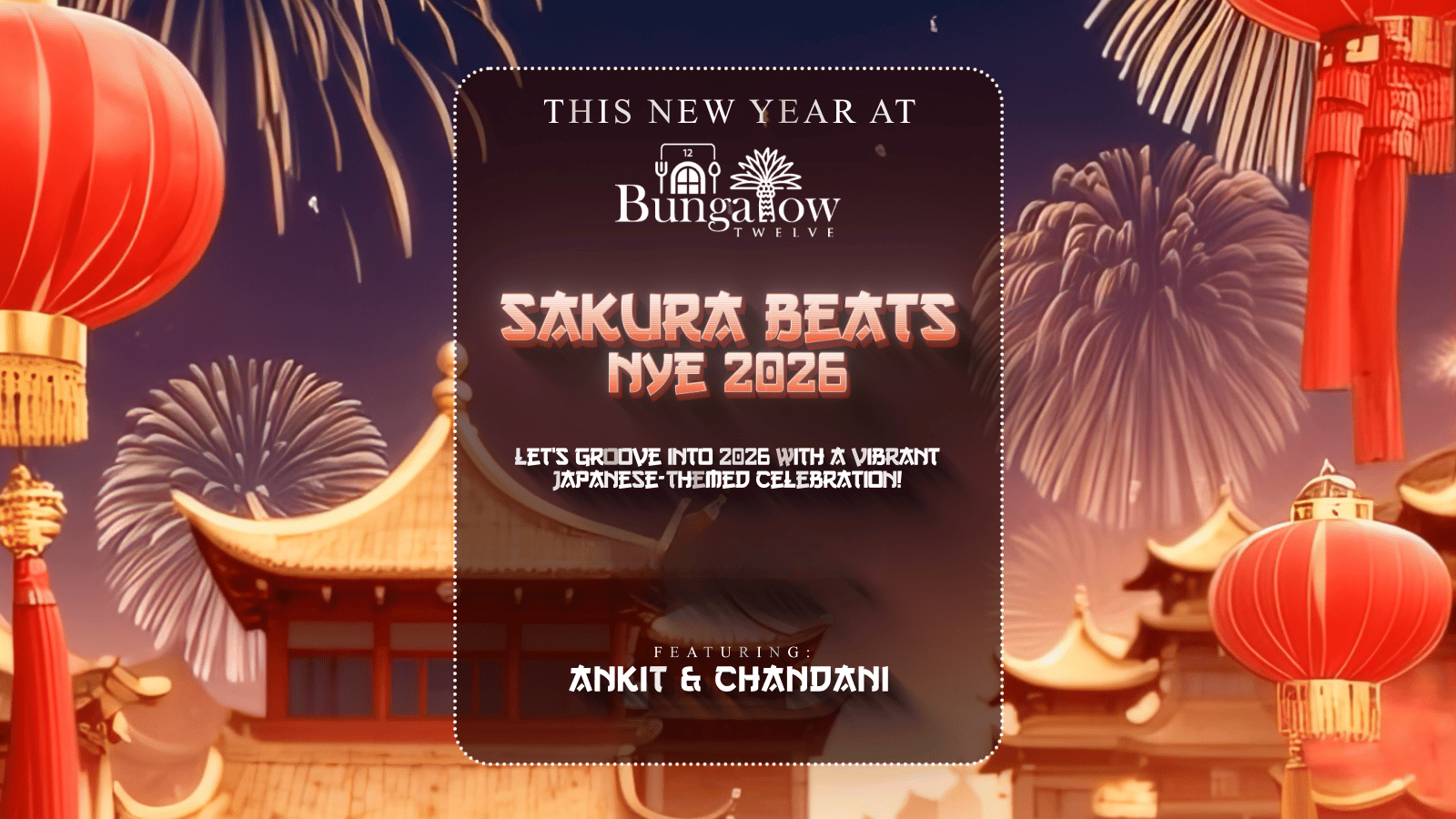 Immerse yourself in an atmosphere inspired by sakura blooms, glowing lanterns, and high-energy beats as the night comes alive with electrifying music by Ankit & Chandani. From feel-good grooves to dancefloor anthems, the vibe is set for a joyful countdown into the New Year.