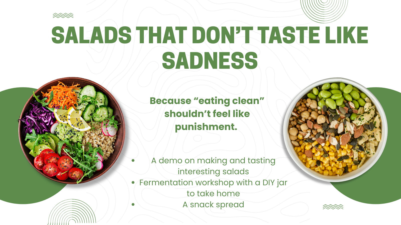 Whether you love salads, tolerate them, or actively distrust them, this session is designed to surprise you (in a good way).