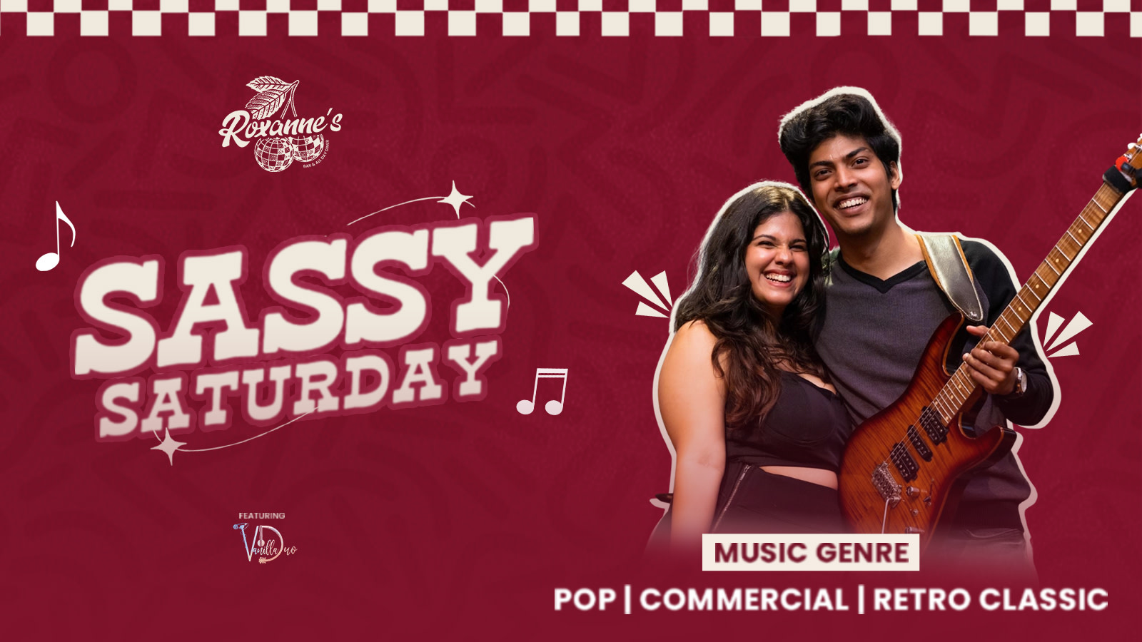Sassy Saturdays ft. Vanilla Duo at Roxanne’s Bar & All Day Diner — turn the sass up as Vanilla Duo brings a night of commercial hits, pop favourites and dancefloor anthems. Dress bold, grab your crew and get ready for a stylish Saturday night with great music, cocktails and nonstop vibes. 10 PM onwards. 💃🎶