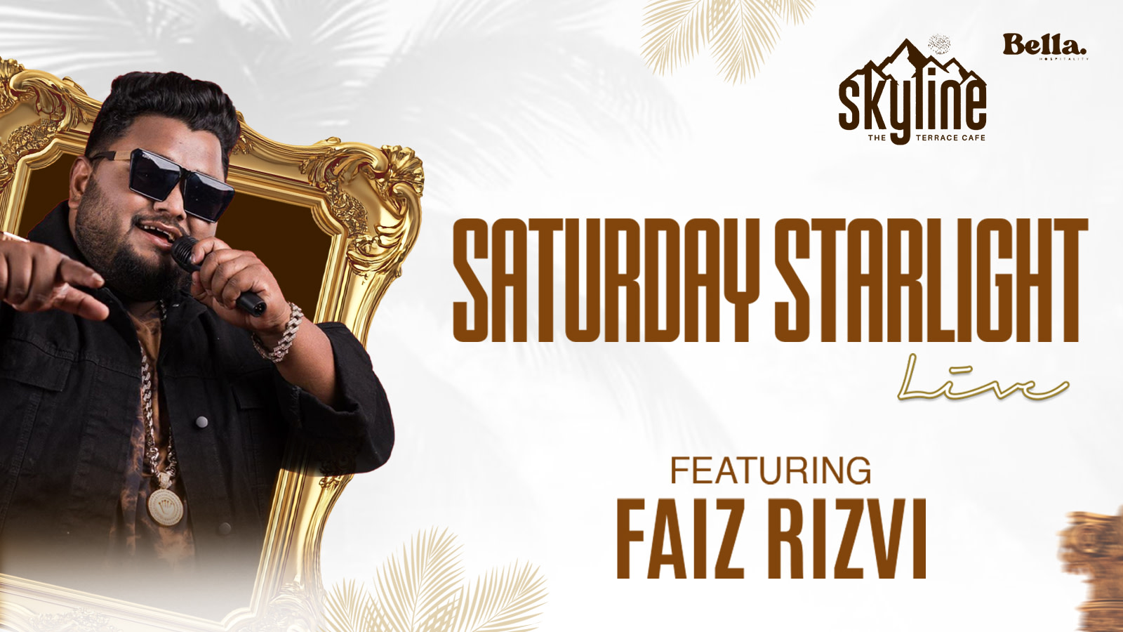 Light up your weekend at Skyline – The Terrace Cafe with Saturday Starlight Live, featuring an energetic performance by Faiz Rizvi. Enjoy a night filled with great music, vibrant vibes, and an electrifying atmosphere under the open sky.
