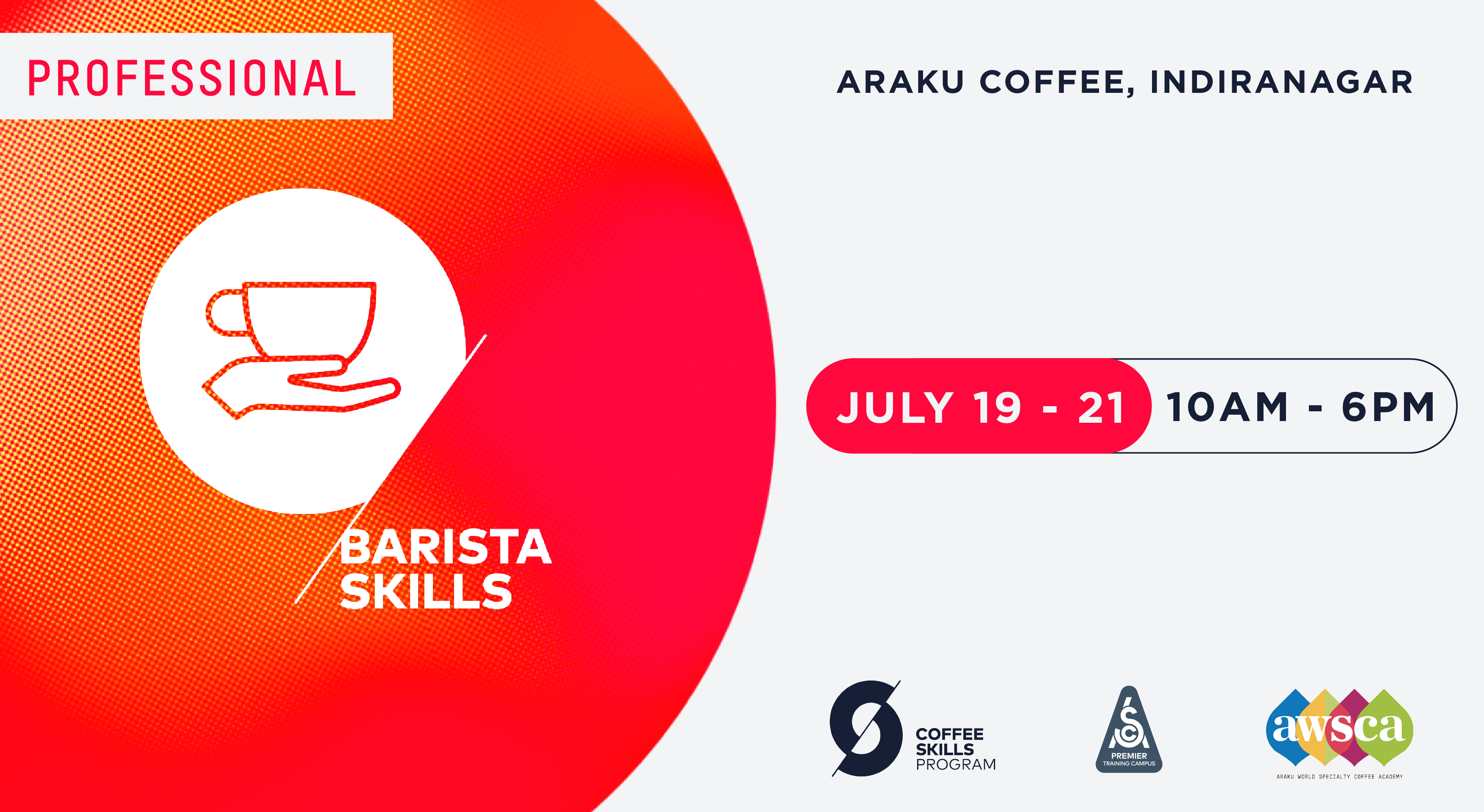 🗓 July 19th to 21st, Friday to Sunday | 🕧 10:00 am to 6:00 pm | SCA Coffee Skills Program: Barista Skills (Professional) | Priced at INR 43,440 ++