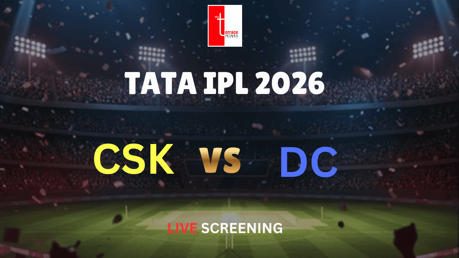 Get ready for an exciting IPL showdown as Chennai Super Kings take on Delhi Capitals live on the giant screen at The Terrace during the thrilling Indian Premier League 2026 season.