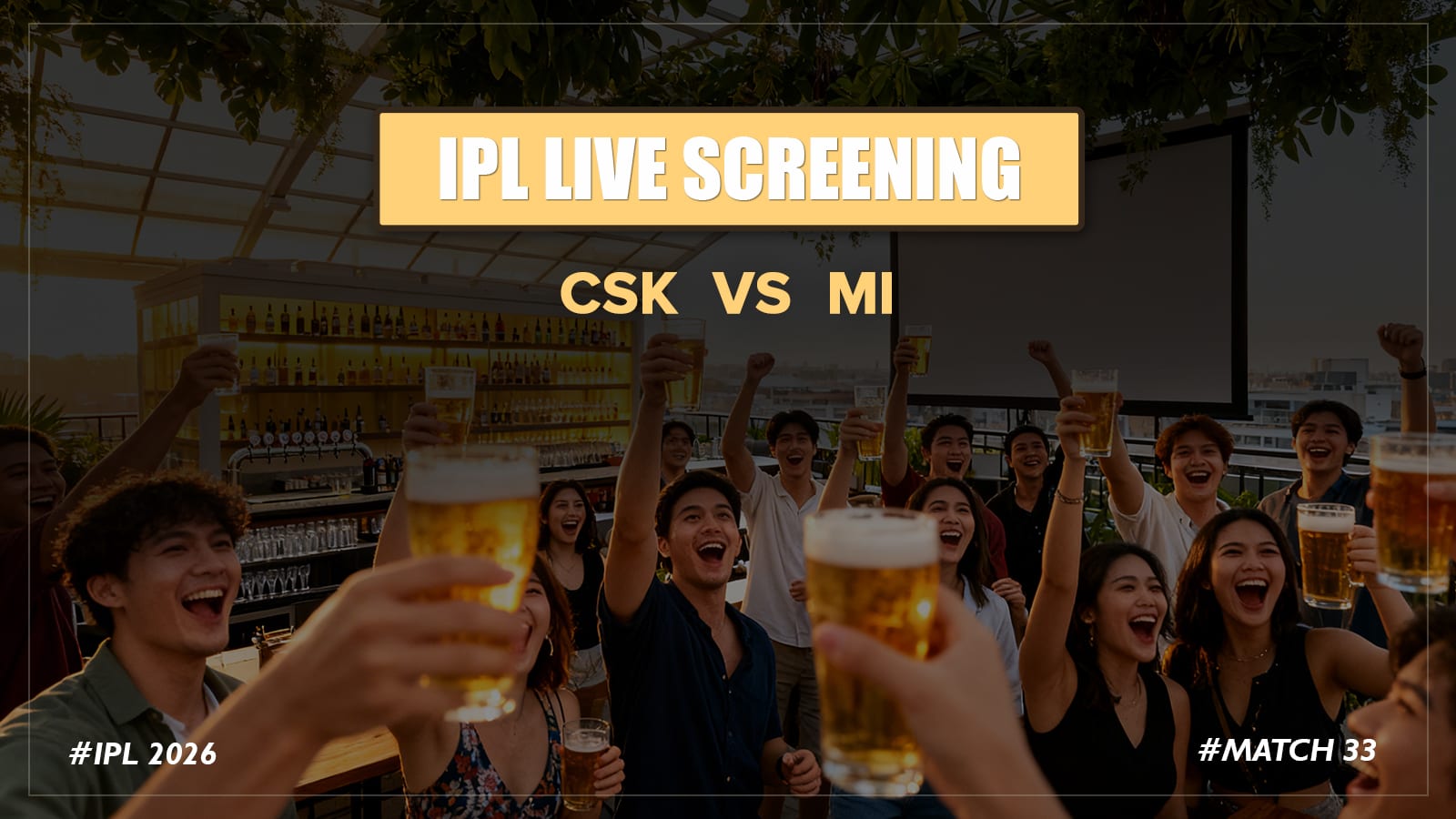 Experience the ultimate IPL showdown as Chennai Super Kings take on Mumbai Indians this Thursday. The venue comes alive as two of the biggest franchises in cricket clash, bringing every boundary, wicket, and turning point straight to the big screen. Surrounded by roaring fans and an electrifying atmosphere, enjoy the perfect mix of cricket thrill, great food, and refreshing drinks. With pride, legacy, and rivalry on the line, every over promises edge-of-the-seat action.