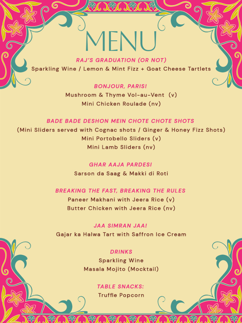 This Valentine's edition of SCC Gourmet Cinema celebrates Dilwale Dulhania Le Jayenge - the iconic journey of Raj and Simran that taught us what it means to follow your heart, honor tradition, and find love across continents. From the mustard fields of Punjab to the cobbled streets of Europe, DDLJ is more than a movie, it’s an emotion.