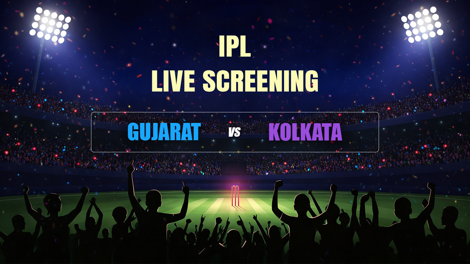 Get ready for a high-voltage IPL 2026 clash as Gujarat Titans take on Kolkata Knight Riders in an action-packed showdown! Witness every boundary, wicket, and turning point live on massive screens with an electrifying crowd. The energy is unmatched with pulsating music, great food, and refreshing drinks to keep the vibe alive. Cheer for your team and soak in the ultimate match-day atmosphere.