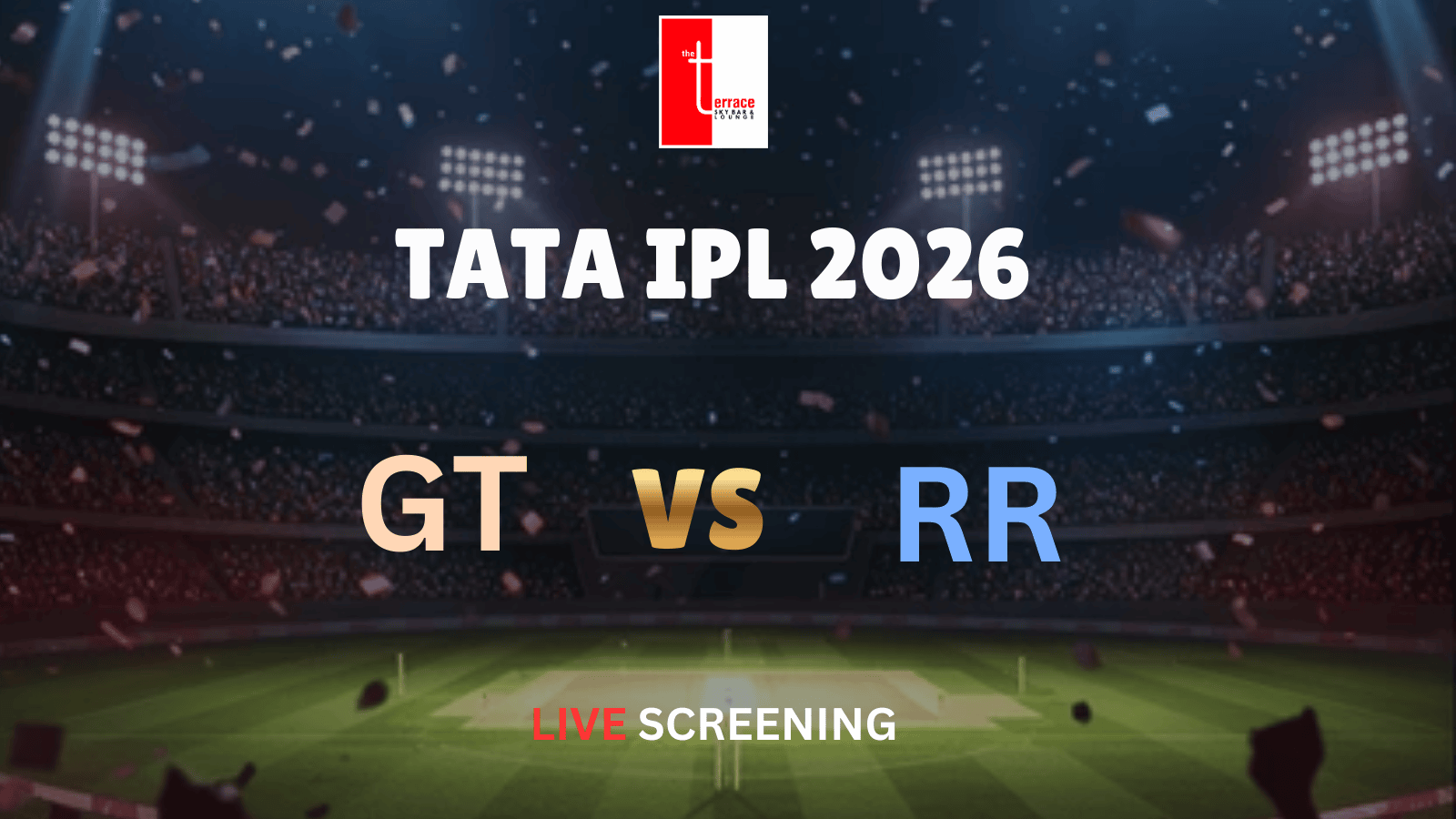 Catch the thrilling clash between Gujarat Titans and Rajasthan Royals live on the giant screen at The Terrace during the exciting Indian Premier League 2026 season.