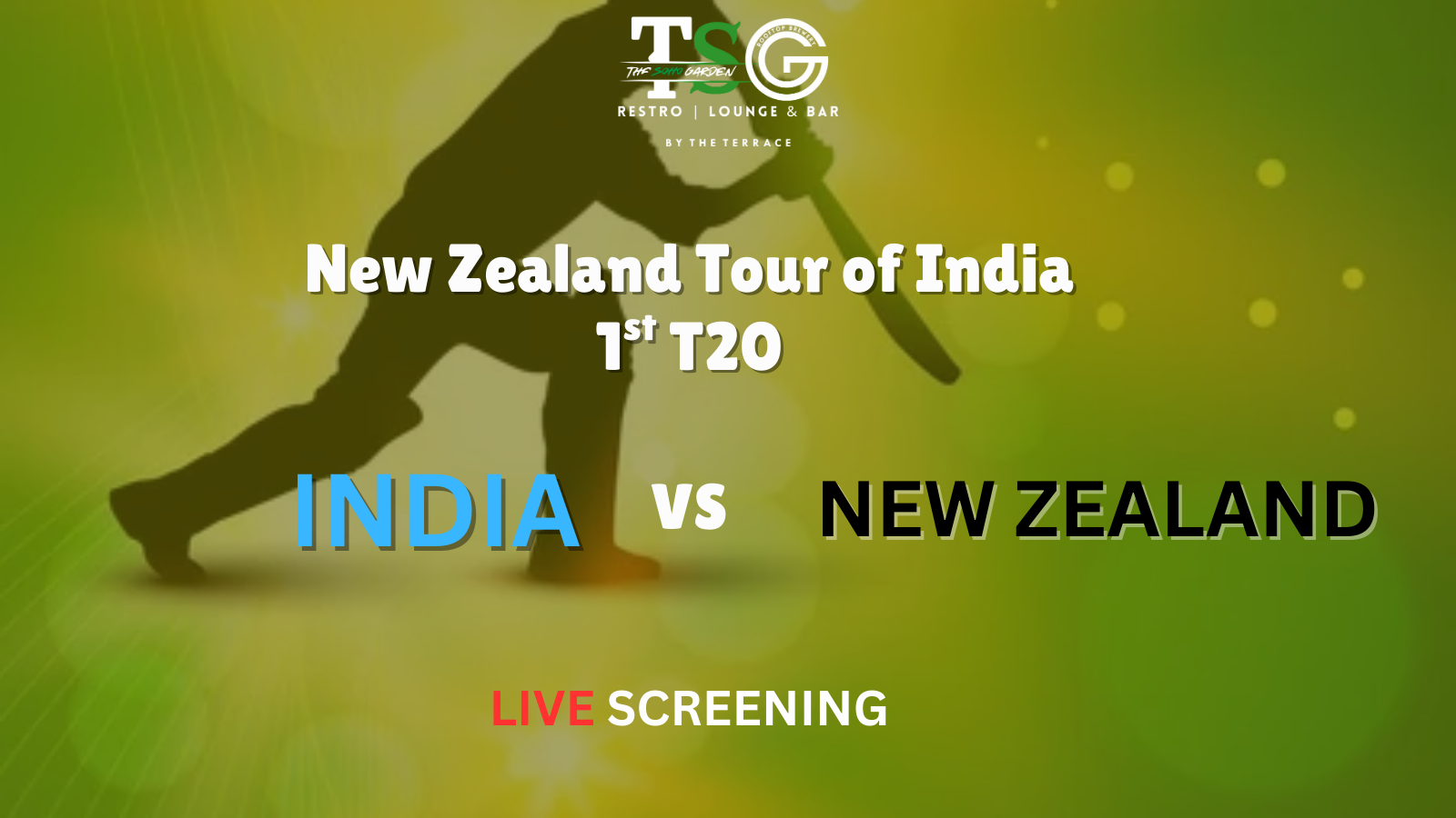 Get ready for high-octane cricket action as India takes on New Zealand in the 1st T20, streamed LIVE on the big screen at The Soho Garden, Ghaziabad! 🔥