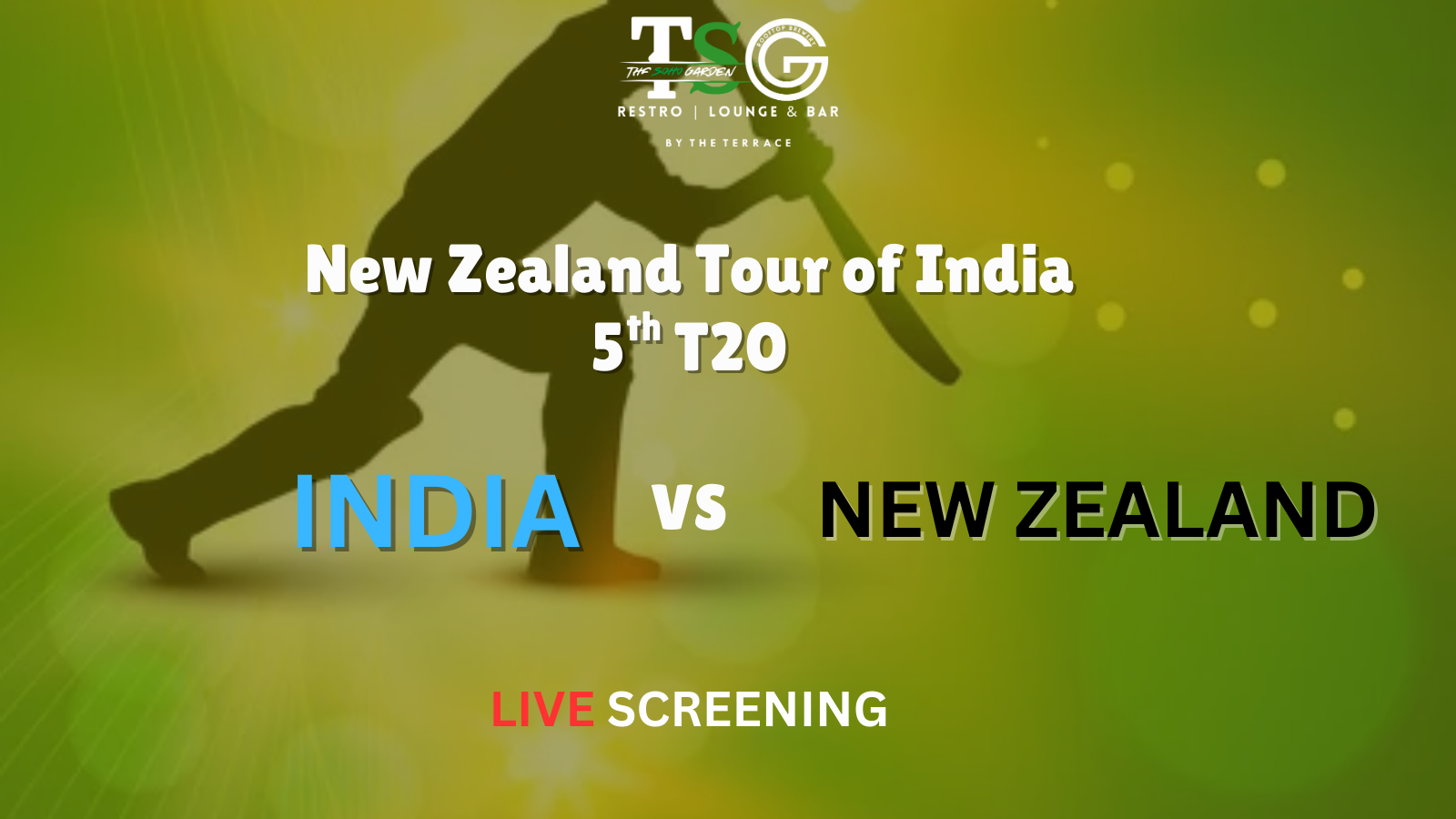 The grand finale is here! ๐ Watch India clash with New Zealand in the 5th T20, streamed LIVE on the big screen at The Soho Garden, Ghaziabad. Donโt miss a single thrilling moment!