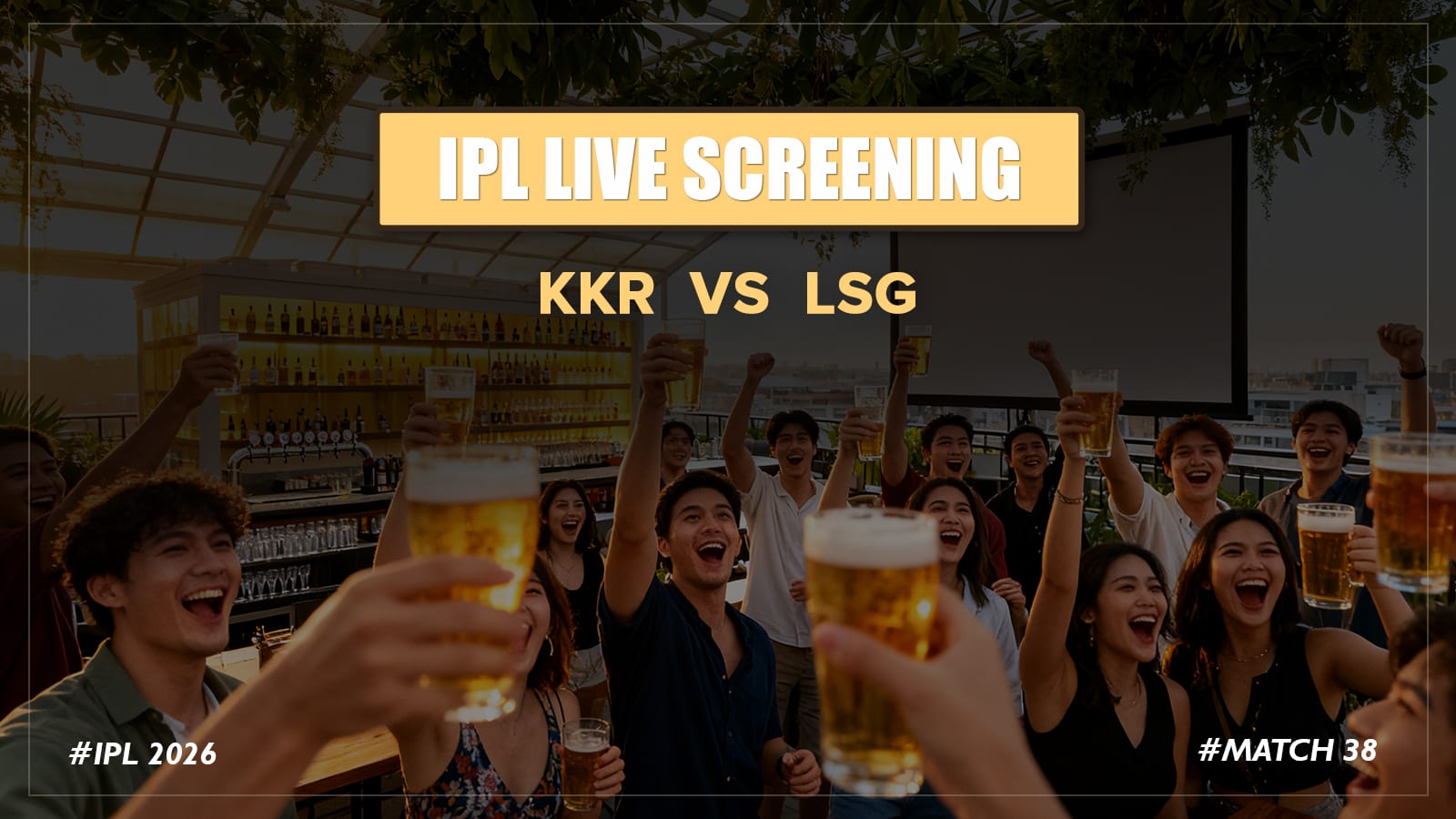 Gear up for an action-packed IPL night as Kolkata Knight Riders take on Lucknow Super Giants this Sunday. The excitement builds with every over as explosive batting, sharp bowling, and game-changing moments unfold on the big screen. Surrounded by a buzzing crowd, soak in the electrifying atmosphere along with great food and refreshing drinks. With both teams known for their firepower, expect a contest filled with intensity and edge-of-the-seat drama.