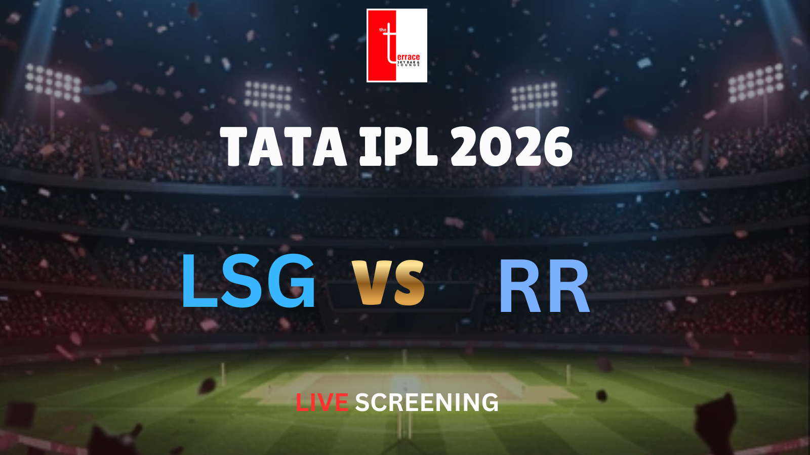 Get ready for an exciting IPL showdown as Lucknow Super Giants take on Rajasthan Royals in a thrilling clash, live at The Terrace Skybar & Lounge!