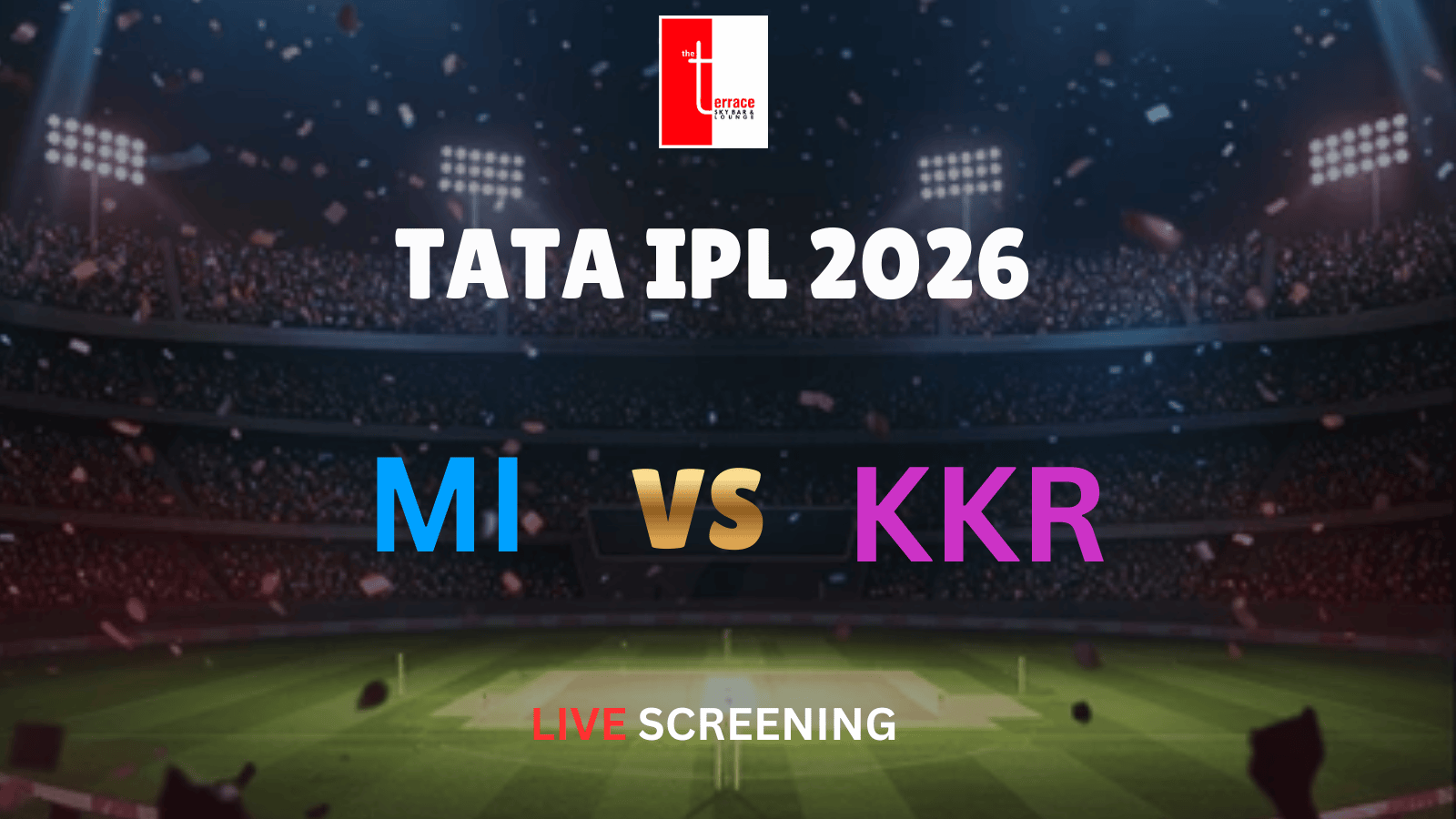 Experience the excitement of Mumbai Indians vs Kolkata Knight Riders live on the big screen at The Terrace during the thrilling Indian Premier League 2026 season.
