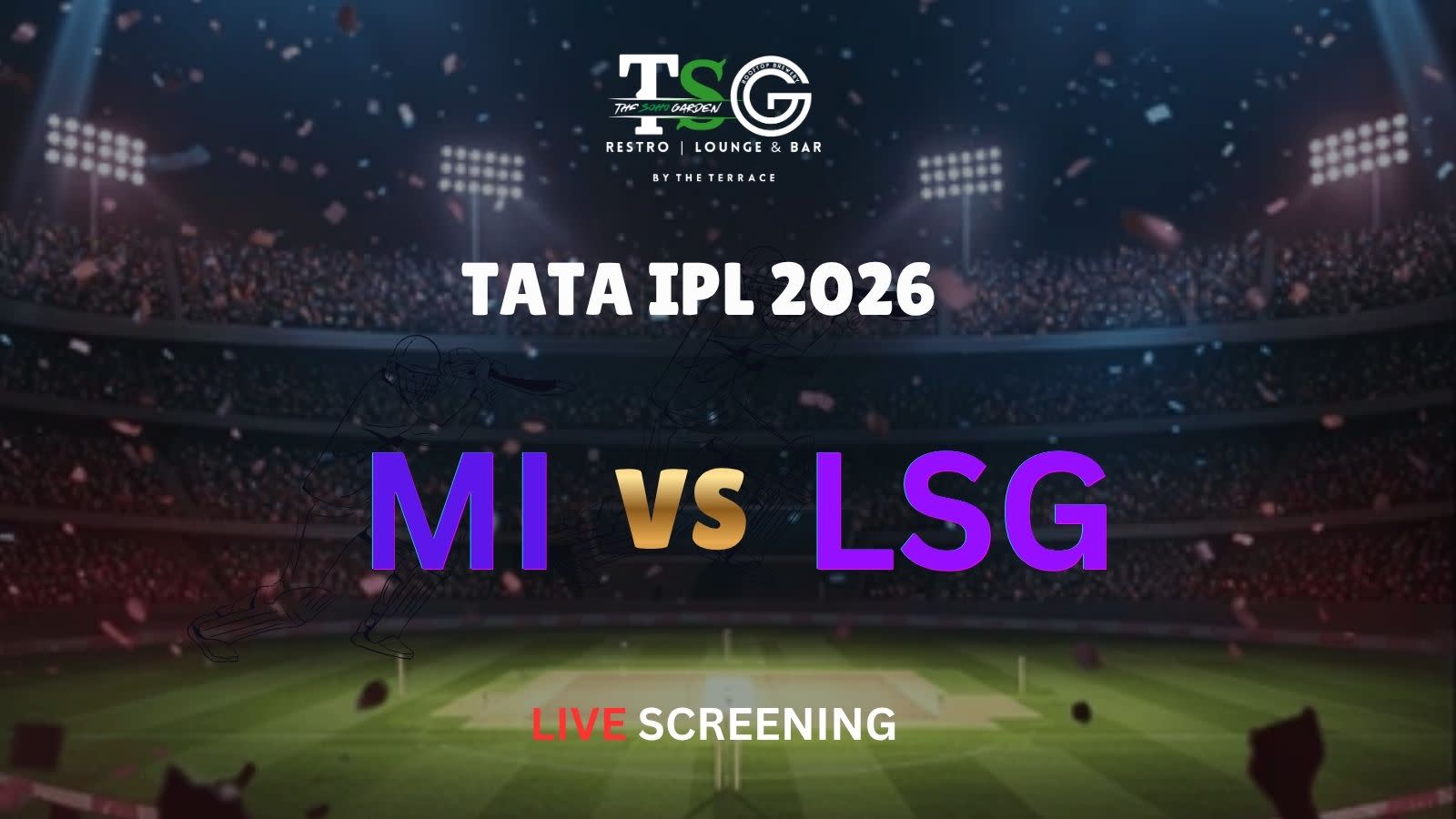 MI vs LSG Live Screening at The Soho Garden ๐๐ฅ