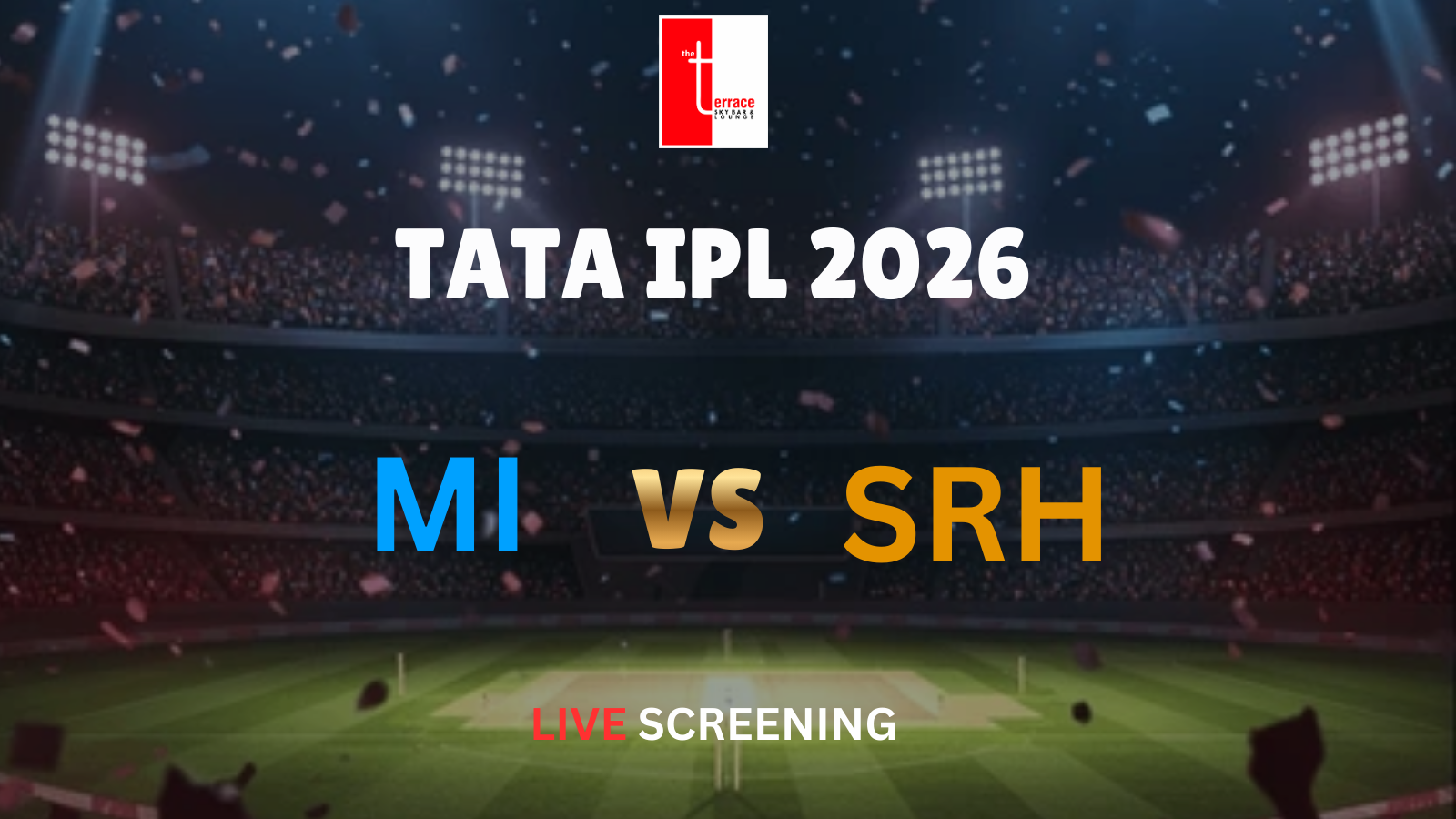Get ready for a high-octane IPL clash as Mumbai Indians take on Sunrisers Hyderabad in an electrifying showdown, live at The Terrace Skybar & Lounge!